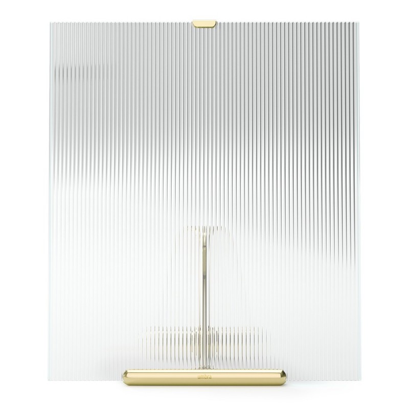 Фоторамка Flute из ребристого стекла подчеркнет красоту ваших снимков и украсит интерьер. Благодаря минималистичному дизайну она легко впишется в различные стили оформления, а практичные материалы обеспечат удобное использование. Рамка имеет устойчивое металлическое основание и подходит для фотографий формата 10х15 см и 13х18 см.Материалы: цинк, стекло, сталь. Размеры: 26х11х30 см. Цвет основания: латунь.Пыль и загрязнения можно удалять при помощи мягкого влажного материала. Запрещается использование абразивов и агрессивной бытовой химии.