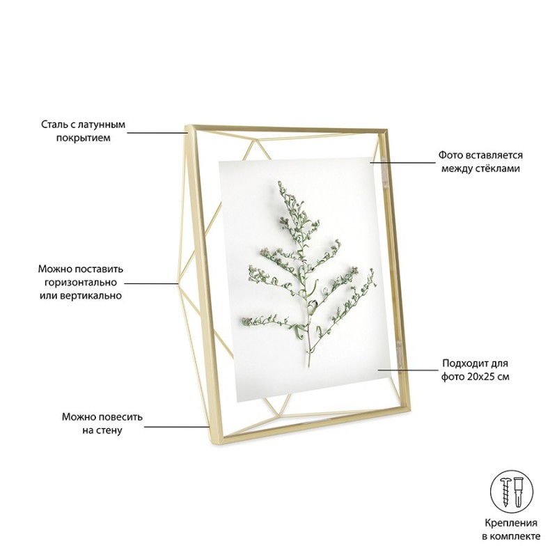 Фоторамка Prisma станет настоящим алмазом в интерьере вашей комнаты. Форма, вдохновленная огранкой бриллиантов, привлекает внимание и вызывает восхищение. При этом ее достоинство в том, что она не отвлекает от главного – от памятного снимка внутри.Подходит для фото размером 20х25 см.Материал: сталь, стекло, ПВХ. Размеры: 25,4х7,6х30 см. Цвет: золотистый.Пыль и загрязнения удалять при помощи мягкой влажной салфетки. Запрещается использование агрессивной бытовой химии и абразивных материалов.
