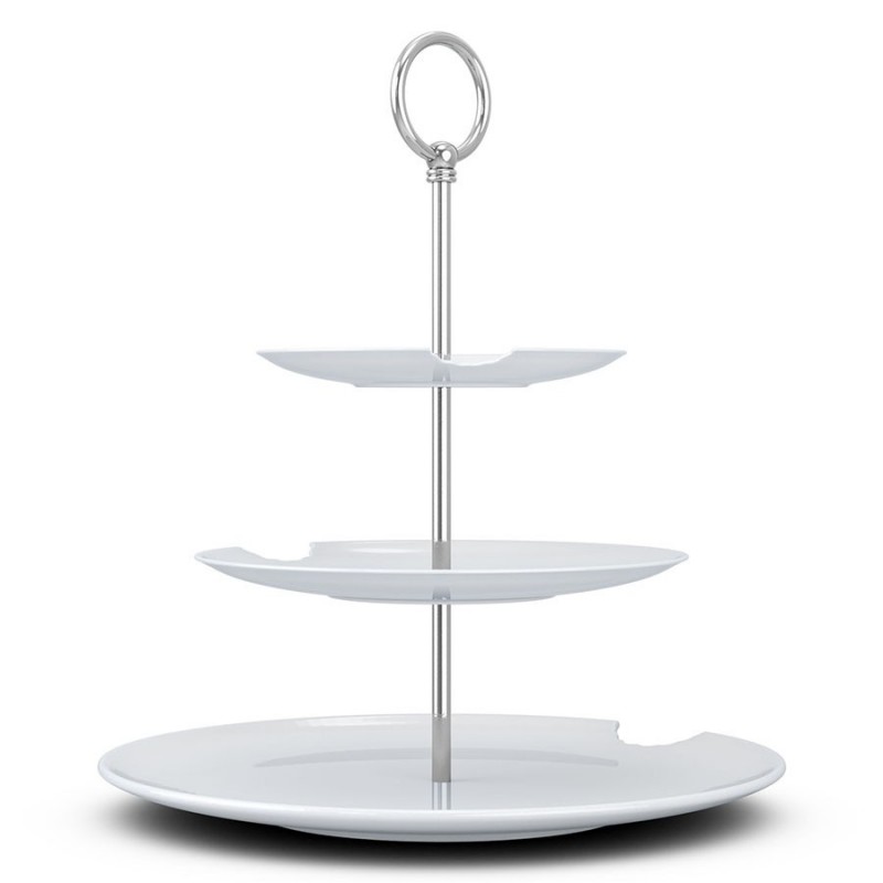 Этажерка Food-Tempel отлично подходит для подачи сладостей и фруктов. На трех ярусах достаточно места, чтобы разложить много лакомств для торжественного застолья или угощение на каждый день. Посуда с таким дизайном обязательно поднимет настроение и органично впишется практически в любую в сервировку стола.Особенности и преимущества:- Высококачественный фарфор не разрушается и не желтеет, а нержавеющая сталь не тускнеет со временем. - За гладкой поверхностью всех элементов этажерки легко ухаживать. - Благодаря эффектному дизайну подходит для оформления помещений в современном и классическом стиле. - Для хранения или тщательного мытья тарелки и стержень легко разъединить, а потом заново собрать в прочную конструкцию. - Поставляется в красивой подарочной коробке.Материалы: фарфор, нержавеющая сталь. Размеры: высота – 32 см, диаметр верхней тарелки – 15 см, средней – 20 см, нижней – 28 см. Цвет тарелок – белые, стержень – серебристый.В посудомоечной машине можно мыть только тарелки, стержень рекомендовано мыть вручную с жидким моющим средством. Запрещено использовать абразивные составы и щетки с жесткой щетиной.