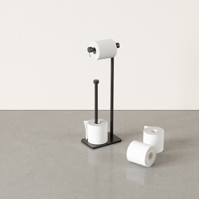 Держатель для туалетной бумаги Cappa – отличный выбор для поклонников стиля минимализм и всех, кто ценит качество и практичность. Напольный аксессуар отличается эргономичным дизайном и компактностью, что обеспечивает удобное использование и установку в санузлах даже с небольшой площадью. Функциональные элементы из высокопрочной стали делают конструкцию надежной и долговечной. Держатель позволяет разместить одновременно три рулона туалетной бумаги – один используемый и два резервных.Материалы: сталь, цемент. Размеры: 20х12х52 см. Вес: 1,39 кг. Цвет: черный.Пыль и загрязнения удалять при помощи мягкой влажной салфетки. Запрещается использование агрессивной бытовой химии и абразивных материалов.
