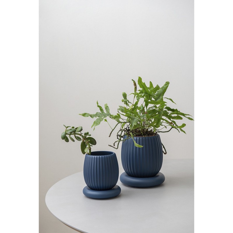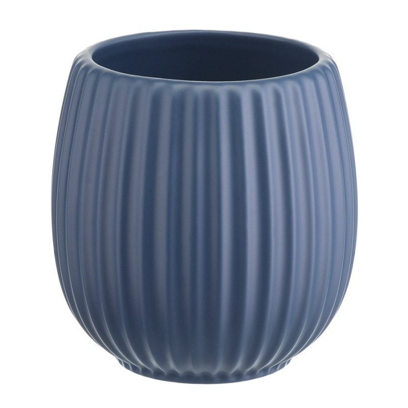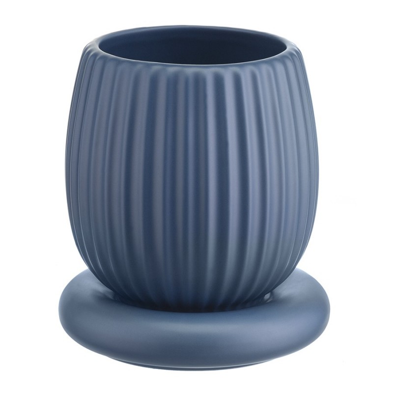 Горшок цветочный темно-синего цвета из коллекции Edge хорошо подойдет для небольших комнатных растений и поможет привнести природу в дом. Изделие простой округлой формы с фактурными гранями отлично сочетается со свечами и вазами из этой же коллекции, позволяя создавать интересные интерьерные композиции. Горшок выполнен из доломита, устойчивого к сколам, легкого и экологически чистого материала, снаружи и внутри покрыт матовой глазурью, имеет дренажное отверстие в нижней части. Подстановочная тарелка входит в комплект поставки. Объем: 1,2 л. Высота: 16,5 см.