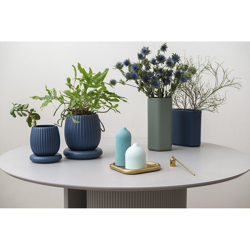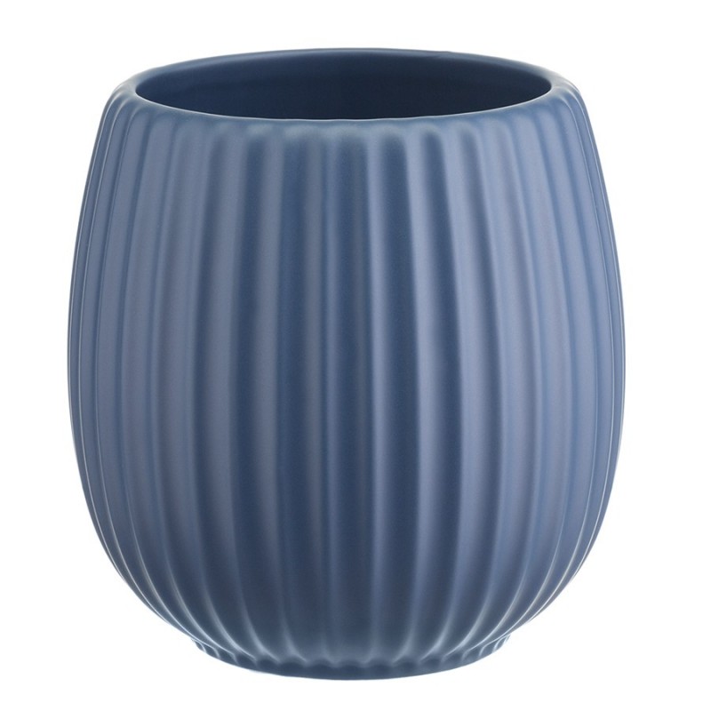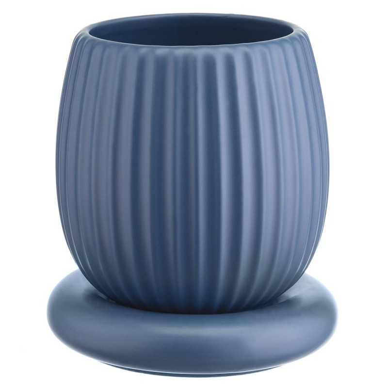 Горшок цветочный темно-синего цвета из коллекции Edge хорошо подойдет для небольших комнатных растений и поможет привнести природу в дом. Изделие простой округлой формы с фактурными гранями отлично сочетается со свечами и вазами из этой же коллекции, позволяя создавать интересные интерьерные композиции. Горшок выполнен из доломита, устойчивого к сколам, легкого и экологически чистого материала, снаружи и внутри покрыт матовой глазурью, имеет дренажное отверстие в нижней части. Подстановочная тарелка входит в комплект поставки. Объем: 2,7 л. Высота: 20,5 см.