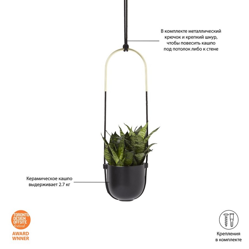 Горшок для растений подвесной bolo, D16 см, черный (артикул 187)