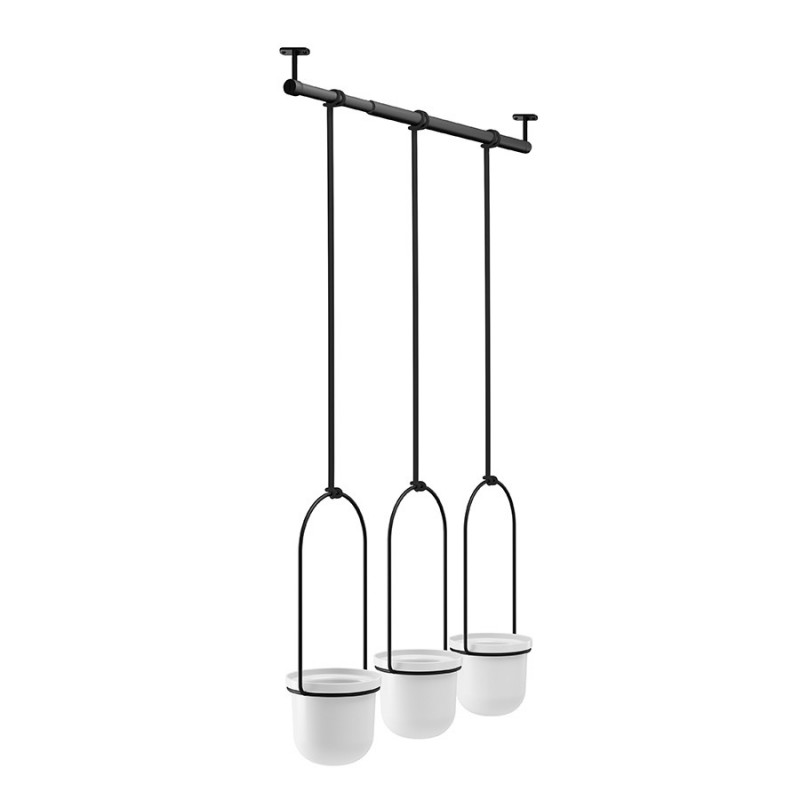 Подвесные горшки Triflora от Umbra станут оригинальным украшением на стене или окне, а также позволят компактно разместить сразу несколько растений и обеспечат их удобный полив. Изготовленные из прочного формованного полипропилена, полученного из вторичной переработки, они остаются легким даже с комнатной зеленью внутри.Дизайнеры создали планку подвесного типа, чтобы освободить место на подоконнике и предметах мебели. Прочные веревки из хлопка надежно удерживают горшки и для максимального удобства могут регулироваться по горизонтали и вертикали. Держатель легко монтируется за счет крепежных элементов, которые входят в комплект.Материалы: полипропилен, сталь. Размеры конструкции: 63х106 см. Дизайн: Chris Snell, Dayna Mailach. Цвет: белый.Пыль и загрязнения можно удалять при помощи мягкого влажного материала.