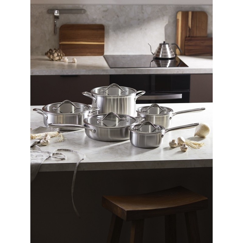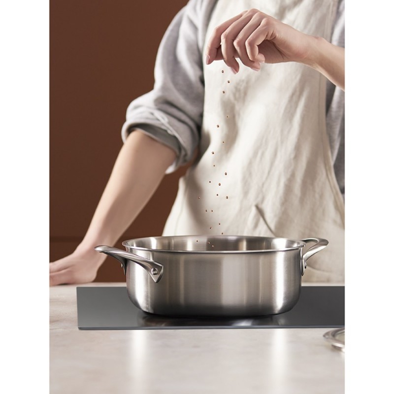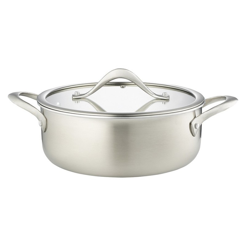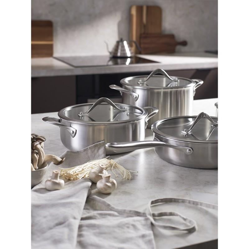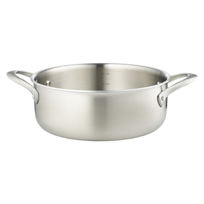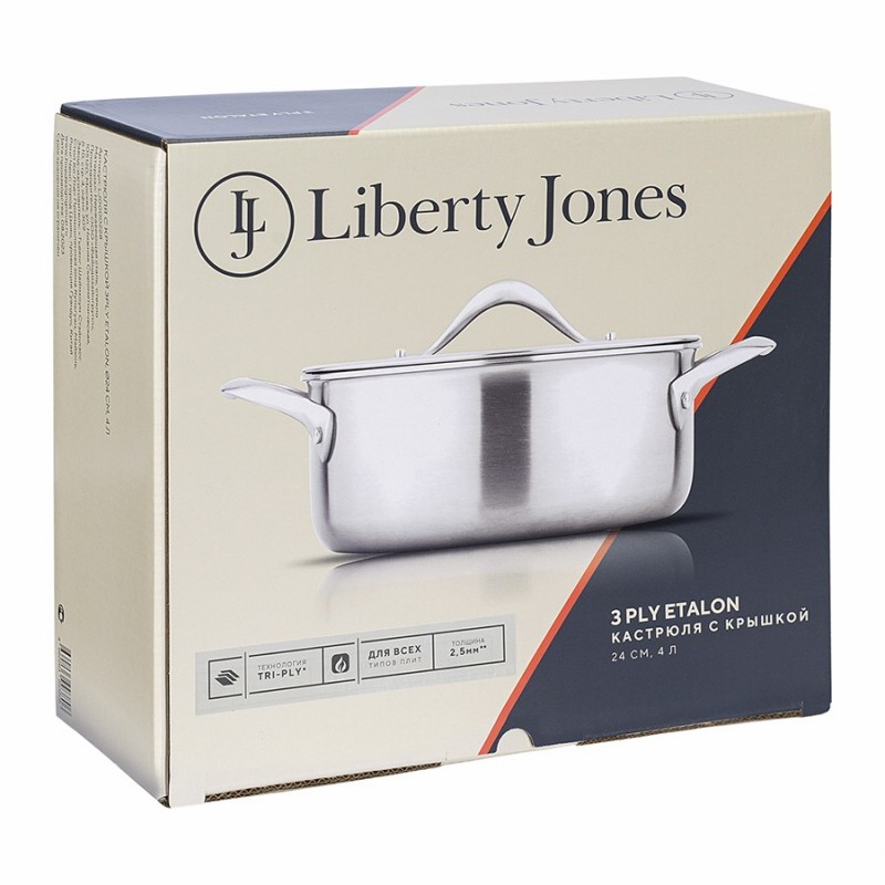 Кастрюля с крышкой 3Ply Etalon, изготовленная по инновационной технологии TRI-PLY, поможет получить настоящее удовольствие от готовки и позволит почувствовать себя настоящим шеф-поваром на собственной кухне.Особенности и преимущества:- Кастрюля изготовлена из высококачественной нержавеющей стали 18/10, благодаря чему долго служит, сохраняя первозданный вид. - Дно и стенки из нержавеющей стали толщиной 2,5 мм с внутренним слоем из алюминия обеспечивают равномерное распределение тепла. - Посуда с толстым дном и стенками менее подвержена вмятинам и повреждениям. - Устойчивые к нагреву ручки гарантируют безопасное и удобное использование. - Мерная шкала, нанесенная на внутреннюю поверхность посуды, позволяет быстро и легко отмерять нужное количество жидкости. - Крышка выполнена из ударопрочного закаленного стекла и оснащена отверстием для вывода пара. - Кастрюля подходит для всех видов плит, включая индукционные, газовые и электрические. - Благодаря матовой поверхности посуда 3Ply Etalon выглядит невероятно стильно, что делает ее украшением любой современной кухни.Посуда из нержавеющей стали 3Ply Etalon изготовлена по инновационной технологии TRI-PLY – ее стенки и дно имеют два слоя стали, между которыми предусмотрен слой алюминия. Эта особенность обеспечивает изделиям превосходную теплопроводность, практичность и долговечность. Коллекция идеально подходит для любых типов плит и впечатляет трендовым дизайном – сочетание современных форм и матовой поверхности делает ее настоящим украшением любой кухни.Материал: нержавеющая сталь, алюминий, стекло. Диаметр по краю внешний: 25,6 см. Диаметр по краю внутренний: 24 см. Длина: 35,4 см. Высота: 9,2 см. Диаметр дна снаружи: 22 см. Диаметр дна изнутри: 22 см. Высота стенки изнутри: 9 см. Объем: 4 л.Можно мыть вручную и в посудомоечной машине. Перед первым использованием необходимо промыть кастрюлю в теплой мыльной воде при помощи мягкой губки. В дальнейшем рекомендуется очищать посуду сразу после приготовления, как только она остынет. Запрещается использование абразивов и агрессивной бытовой химии.