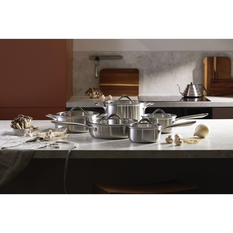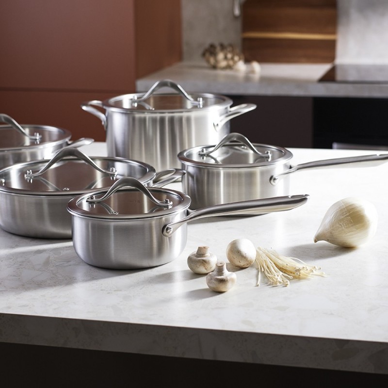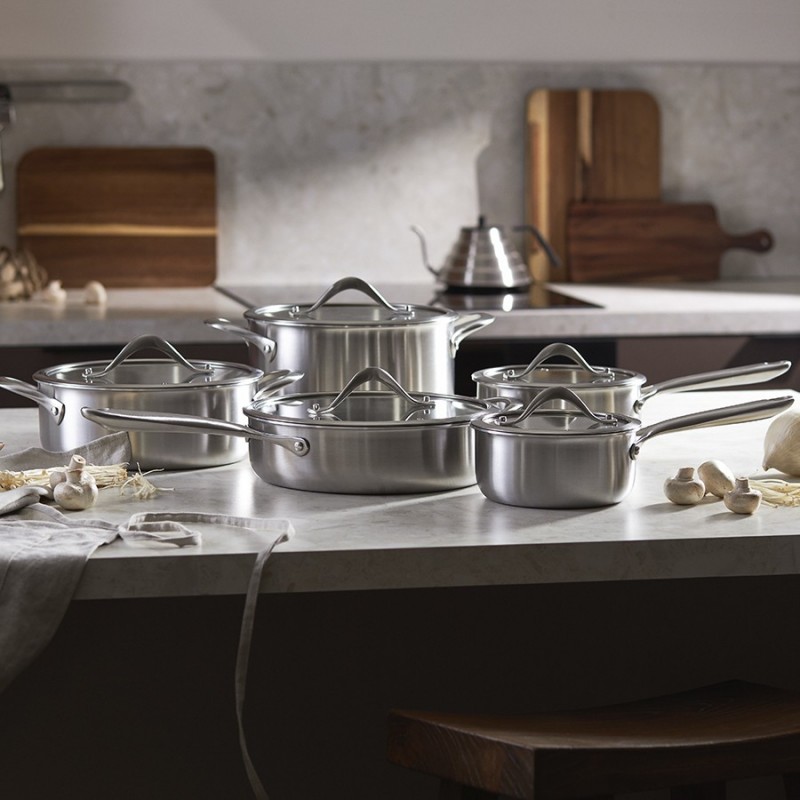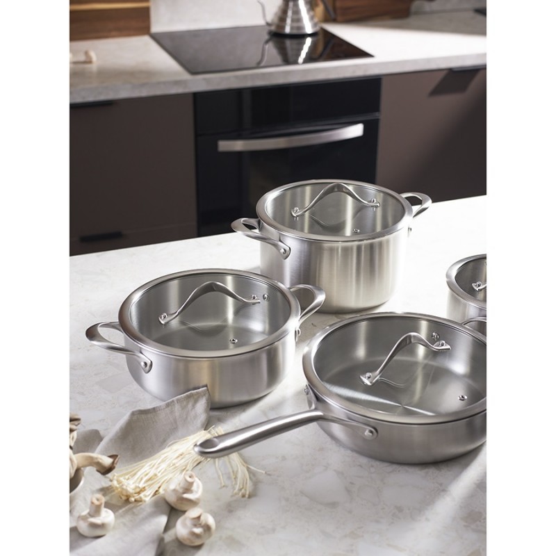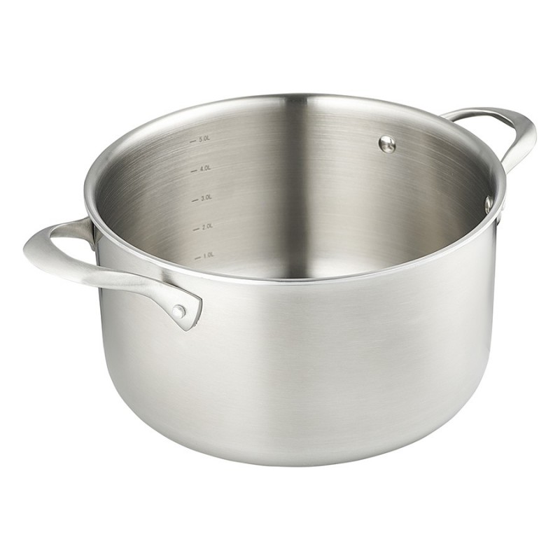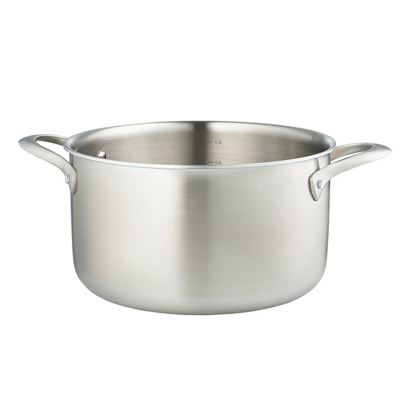 Кастрюля с крышкой 3Ply Etalon, изготовленная по инновационной технологии TRI-PLY, поможет получить настоящее удовольствие от готовки и позволит почувствовать себя настоящим шеф-поваром на собственной кухне.Особенности и преимущества:- Кастрюля изготовлена из высококачественной нержавеющей стали 18/10, благодаря чему долго служит, сохраняя первозданный вид. - Дно и стенки из нержавеющей стали толщиной 2,5 мм с внутренним слоем из алюминия обеспечивают равномерное распределение тепла. - Посуда с толстым дном и стенками менее подвержена вмятинам и повреждениям. - Устойчивые к нагреву ручки гарантируют безопасное и удобное использование. - Мерная шкала, нанесенная на внутреннюю поверхность посуды, позволяет быстро и легко отмерять нужное количество жидкости. - Крышка выполнена из ударопрочного закаленного стекла и оснащена отверстием для вывода пара. - Кастрюля подходит для всех видов плит, включая индукционные, газовые и электрические. - Благодаря матовой поверхности посуда 3Ply Etalon выглядит невероятно стильно, что делает ее украшением любой современной кухни.Посуда из нержавеющей стали 3Ply Etalon изготовлена по инновационной технологии TRI-PLY – ее стенки и дно имеют два слоя стали, между которыми предусмотрен слой алюминия. Эта особенность обеспечивает изделиям превосходную теплопроводность, практичность и долговечность. Коллекция идеально подходит для любых типов плит и впечатляет трендовым дизайном – сочетание современных форм и матовой поверхности делает ее настоящим украшением любой кухни.Материал: нержавеющая сталь, алюминий, стекло. Диаметр по краю внешний: 25,7 см. Диаметр по краю внутренний: 24 см. Длина: 35,7 см. Высота: 13,7 см. Диаметр дна снаружи: 22 см. Диаметр дна изнутри: 22 см. Высота стенки изнутри: 13,4 см. Объем: 6 л.Можно мыть вручную и в посудомоечной машине. Перед первым использованием необходимо промыть кастрюлю в теплой мыльной воде при помощи мягкой губки. В дальнейшем рекомендуется очищать посуду сразу после приготовления, как только она остынет. Запрещается использование абразивов и агрессивной бытовой химии.