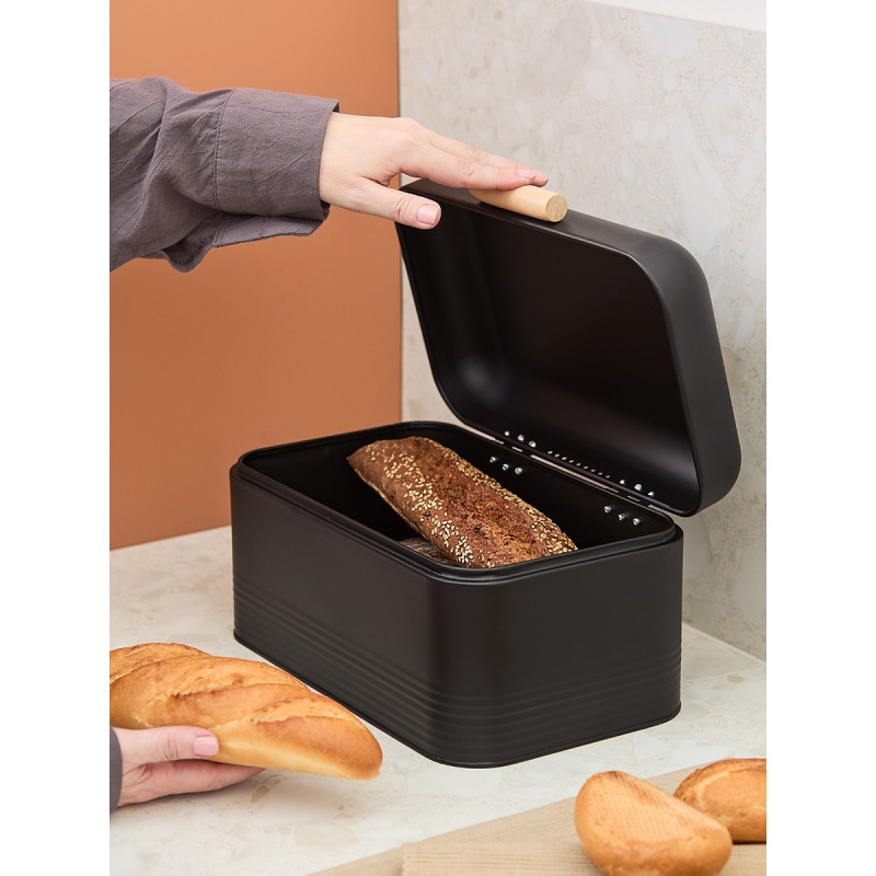 Хлебница Irmel от бренда Smart Solutions сочетает в себе лаконичный дизайн и высокую практичность. Такой аксессуар станет прекрасным дополнением любого современного кухонного интерьера.Особенности и преимущества:- Хлебница выполнена из углеродистой стали с износостойким порошковым покрытием, что гарантирует ей устойчивость к коррозии, повреждениям и износу. - Крышка с бамбуковой ручкой привносит в дизайн природную элегантность, препятствует попаданию внутрь пыли и влаги. - На корпусе предусмотрены вентиляционные отверстия для предотвращения отсыревания продуктов и появления плесени. - Небольшие размеры обеспечивают компактное размещение.Материалы: углеродистая сталь, бамбук. Размеры: 30,2х19,7х16 см. Цвет: графит.Загрязнения рекомендуется удалять при помощи мягкого влажного материала. После очищения хлебницу необходимо вытереть насухо. Запрещается мыть хлебницу в посудомоечной машине, использовать абразивы и агрессивную бытовую химию.