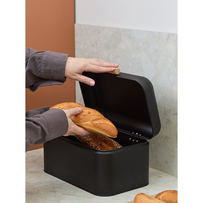 Хлебница Irmel от бренда Smart Solutions сочетает в себе лаконичный дизайн и высокую практичность. Такой аксессуар станет прекрасным дополнением любого современного кухонного интерьера.Особенности и преимущества:- Хлебница выполнена из углеродистой стали с износостойким порошковым покрытием, что гарантирует ей устойчивость к коррозии, повреждениям и износу. - Крышка с бамбуковой ручкой привносит в дизайн природную элегантность, препятствует попаданию внутрь пыли и влаги. - На корпусе предусмотрены вентиляционные отверстия для предотвращения отсыревания продуктов и появления плесени. - Небольшие размеры обеспечивают компактное размещение.Материалы: углеродистая сталь, бамбук. Размеры: 30,2х19,7х16 см. Цвет: графит.Загрязнения рекомендуется удалять при помощи мягкого влажного материала. После очищения хлебницу необходимо вытереть насухо. Запрещается мыть хлебницу в посудомоечной машине, использовать абразивы и агрессивную бытовую химию.