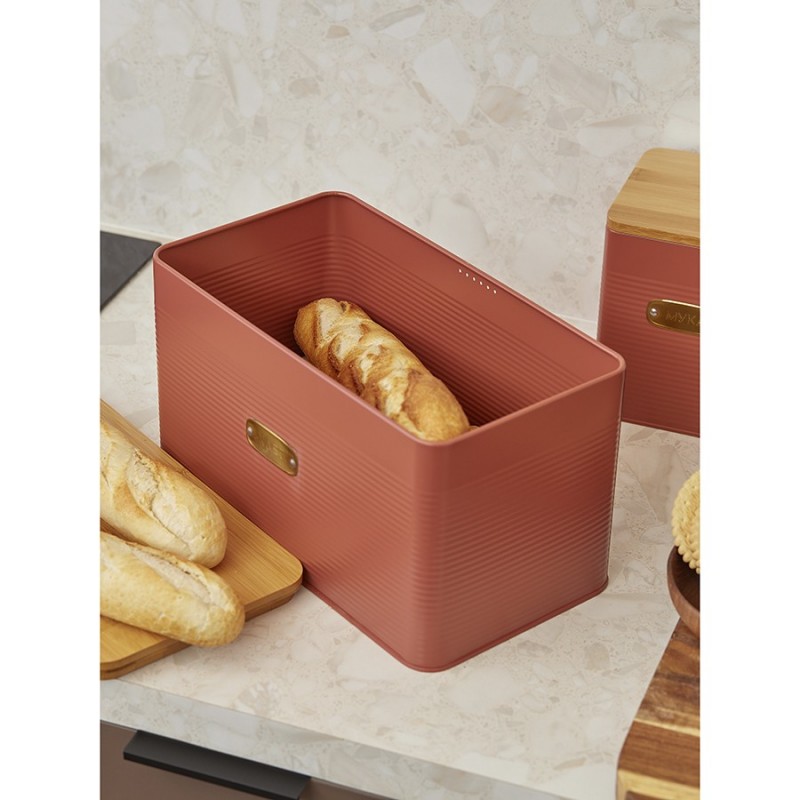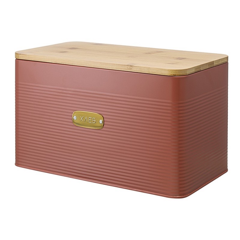 Хлебница Irmel от бренда Smart Solutions сочетает в себе лаконичный дизайн и высокую практичность. Такой аксессуар станет прекрасным дополнением любого современного кухонного интерьера.Особенности и преимущества:- Хлебница выполнена из углеродистой стали с износостойким порошковым покрытием, что гарантирует ей устойчивость к коррозии, повреждениям и износу. - Крышка из бамбука привносит в дизайн природную элегантность, препятствует попаданию внутрь пыли и влаги, а также может использоваться в качестве разделочной доски. - На корпусе предусмотрены вентиляционные отверстия для предотвращения отсыревания продуктов и появления плесени. - Небольшие размеры обеспечивают компактное размещение.Материалы: углеродистая сталь, бамбук. Размеры: 33х18х19 см. Цвет: терракотаЗагрязнения рекомендуется удалять при помощи мягкого влажного материала. После очищения хлебницу необходимо вытереть насухо. Запрещается использование абразивов и агрессивной бытовой химии.