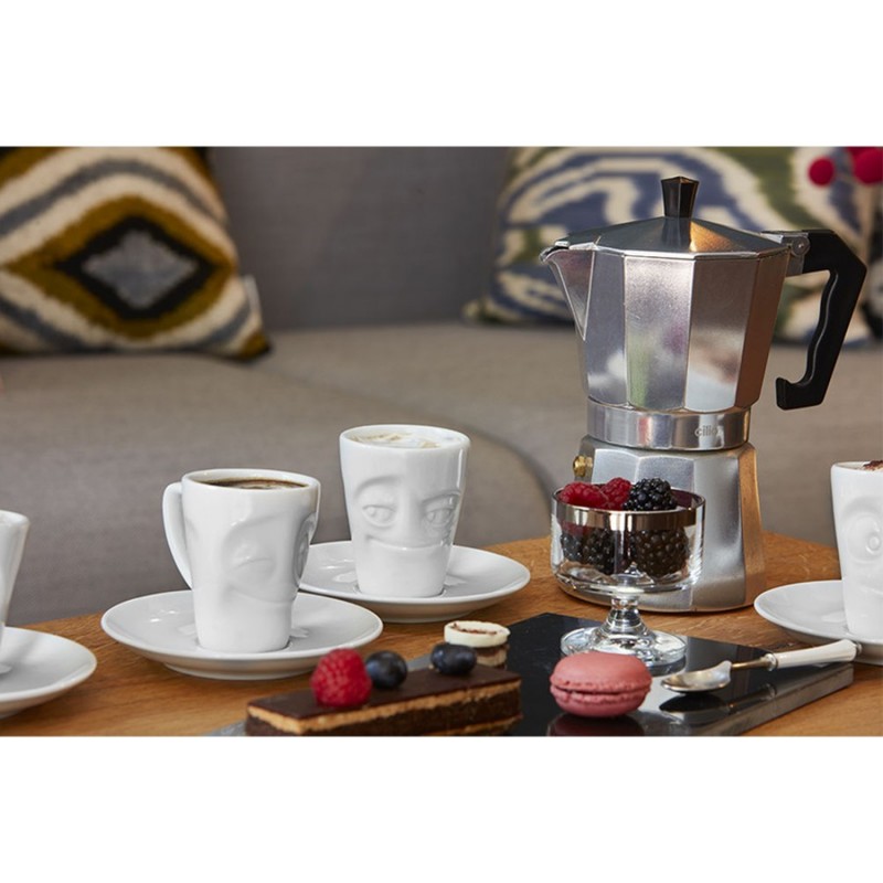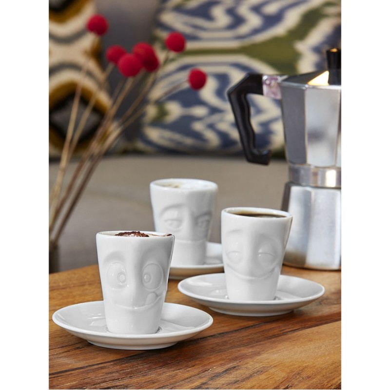 Кофейная пара из оригинальной чашки и блюдца отлично подойдет для подачи эспрессо.Чашка и блюдце выполнены из высококачественного фарфора. Поставляются в красивой подарочной коробке.Размер чашки: 7,2х6х8 см Диаметр блюдца: 12 смМожно мыть в посудомоечной машине и ставить в микроволновую печь.