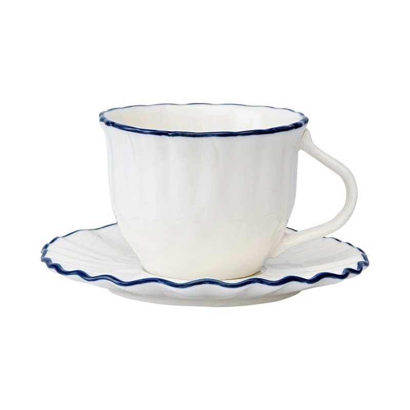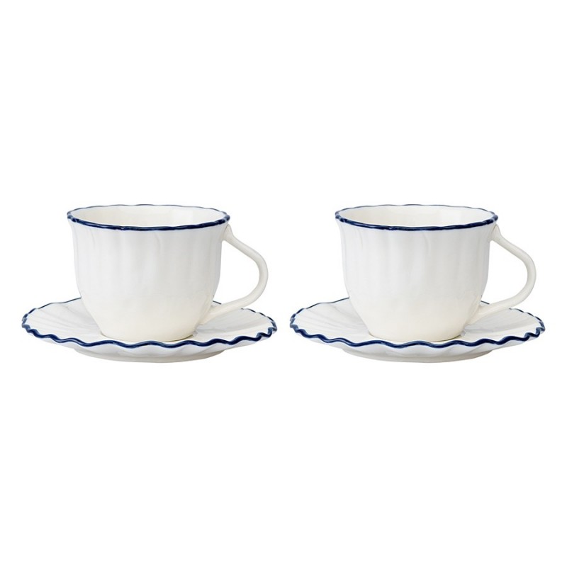 Чашки из коллекции Santorini от бренда Liberty Jones воплощают в себе элегантность посуды из фарфора, привлекая необычным дизайном с контрастными акцентами.Особенности и преимущества:- Фарфор является прочным, устойчивым к износу материалом, который сохраняет презентабельный вид долгие годы. - Акцент в виде контрастной каймы и легкий рельеф делают дизайн интересным и запоминающимся. - Идеально гладкая поверхность и высокая сопротивляемость материала к химическим воздействиям обеспечивают простой уход. - Белая посуда отлично гармонирует с предметами сервировки любой цветовой гаммы.Коллекция Santorini великолепно передает атмосферу уединенного греческого острова, известного своими завораживающими видами и удивительной архитектурой. Оттенки белого и синего напоминают о бескрайнем море и уютных домиках на скалах, а необычная “мятая” фактура фарфора ассоциируется с каменистыми склонами и живописными утесами.Материал: фарфор. Размеры: 12х12х6 см. Объем: 100 мл. Количество в наборе: 2 шт.Можно мыть в посудомоечной машине, замораживать, использовать в микроволновой печи и духовке при температуре не более 180° C.