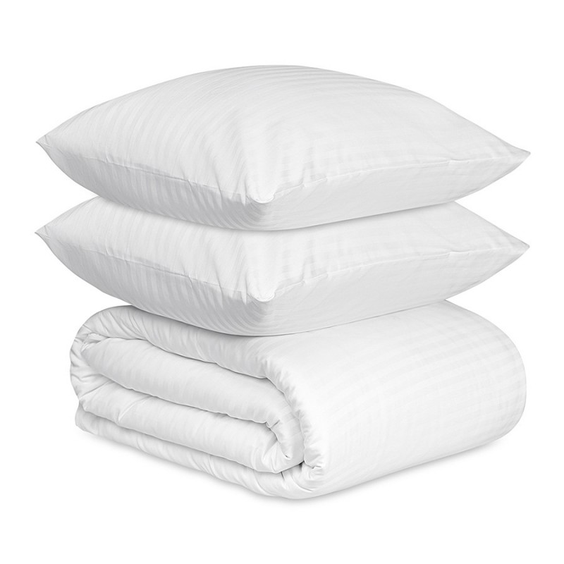 Комплект из двух наволочек и пододеяльника из страйп-сатина из коллекции Essential – постельное белье премиального качества, которое сделает любую спальню более комфортной и изысканной.Особенности и преимущества:- Постельное белье из страйп-сатина украшает характерный узор в виде полос, что делает его заметным акцентом любого интерьера. - Изделия выполнены из натурального, гипоаллергенного хлопкового волокна, обладающего повышенной прочностью и износоустойчивостью. - Ткань практически не мнется после сушки и во время сна, не дает усадку и не деформируется. - Благодаря сложному переплетению нитей материал имеет необычайно мягкую поверхность с легким блеском, высокую плотность и объемную фактуру. - Качественная отделка и прочные швы гарантируют постельному белью долгий срок службы и привлекательный вид даже после многократных стирок. - Элегантный дизайн в полоску прекрасно гармонирует с различными стилевыми решениями интерьера.Состав: 100% хлопок. Плотность: 300 ТС. Размер пододеяльника: 200х220 см. Размер наволочек: 50х70 см.! Максимальная температура стирки 40° C ! Гладить при максимальной температуре 150° C ! Возможна барабанная сушка при низкой температуре ! Не отбеливать ! Сухая чистка запрещена