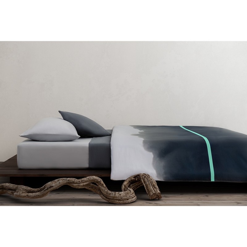 Комплект постельного белья из умягченного сатина из коллекции Slow Motion, Mint с авторским принтом, напоминающим игру света и теней в пространстве по-настоящему освежит интерьер спальни. Симметрия, плавные волны и яркая линия на пододеяльнике создают ощущение умиротворения. Умягченный хлопковый сатин плотностью 300 ТС очень похож на шелк. Он мягкий на ощупь, не теряет внешний вид после множества стирок, не линяет и на нем не образуются катышки. Подходит для повседневного использования. Линейка Slow Motion - вторая коллаборация с предметным дизайнером Димой Логиновым.В комплекте: пододеяльник 150х200 см, застегивающийся на молнию, и две наволочки 50х70 см с системой закрытия клапан. Упаковка: тканевый мешочек.! Максимальная температура стирки 40° C ! Гладить запрещено ! Возможна барабанная сушка при низкой температуре ! Не отбеливать ! Сухая чистка запрещена