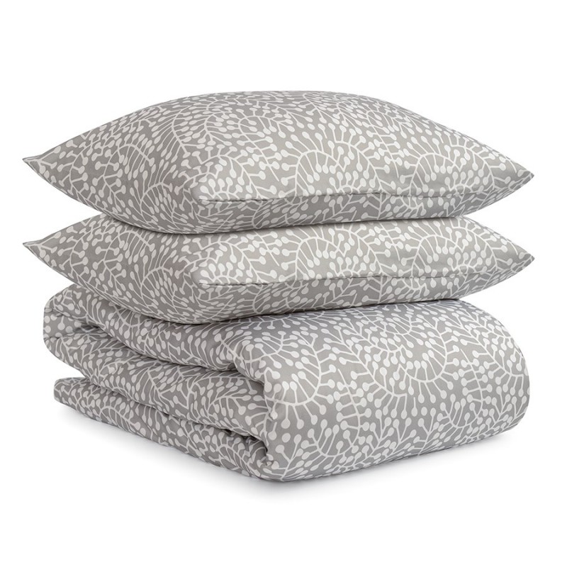 Комплект постельного белья серого цвета с принтом Спелая смородина из коллекции Scandinavian touch станет ярким акцентом в интерьере спальни. Принт со стилизованными ягодами смородины и округлыми линиями веточек, разработанный одним из ведущих финских дизайнерских агентств, гармонично впишется в любой современный интерьер. Сатин плотностью 210 ТС приятен на ощупь, обладает естественным блеском и не теряет внешний вид даже после множества стирок. Состав - 100% хлопок. В комплект входит: - 1 пододеяльник: 150х200 см, застегивающийся на молнию; - 2 наволочки: 50х70 см с клапаном. Упаковка: крафтовая коробка.! Максимальная температура стирки 60° C ! Гладить при максимальной температуре 150° C ! Сушить горизонтально ! Не отбеливать ! Возможна сухая чистка