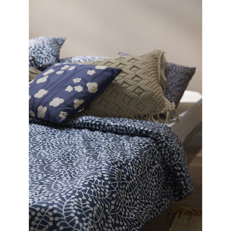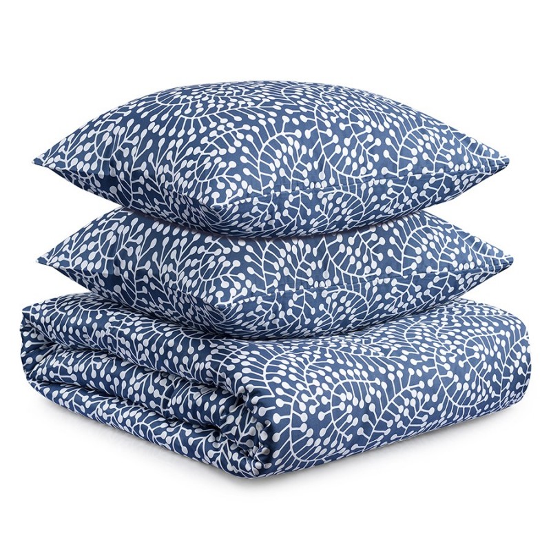 Комплект постельного белья темно-синего цвета с принтом Спелая смородина из коллекции Scandinavian touch станет ярким акцентом в интерьере спальни. Принт со стилизованными ягодами смородины и округлыми линиями веточек, разработанный одним из ведущих финских дизайнерских агентств, гармонично впишется в любой современный интерьер. Сатин плотностью 210 ТС приятен на ощупь, обладает естественным блеском и не теряет внешний вид даже после множества стирок.Состав: 100% хлопок. В комплект входят: - 1 пододеяльник: 150х200 см, застегивающийся на молнию; - 2 наволочки: 50х70 см с клапаном. Упаковка: крафтовая коробка.! Максимальная температура стирки 60° C ! Гладить при максимальной температуре 150° C ! Сушить горизонтально ! Не отбеливать ! Возможна сухая чистка