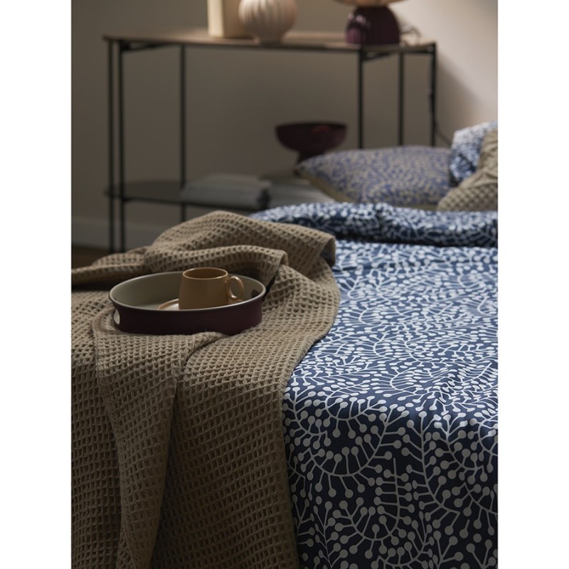 Комплект постельного белья темно-синего цвета с принтом Спелая смородина из коллекции Scandinavian touch станет ярким акцентом в интерьере спальни. Принт со стилизованными ягодами смородины и округлыми линиями веточек, разработанный одним из ведущих финских дизайнерских агентств, гармонично впишется в любой современный интерьер. Сатин плотностью 210 ТС приятен на ощупь, обладает естественным блеском и не теряет внешний вид даже после множества стирок.Состав: 100% хлопок. В комплект входят: - 1 пододеяльник: 200х220 см, застегивающийся на молнию; - 2 наволочки: 50х70 см с клапаном. Упаковка: крафтовая коробка.! Максимальная температура стирки 60° C ! Гладить при максимальной температуре 150° C ! Сушить горизонтально ! Не отбеливать ! Возможна сухая чистка