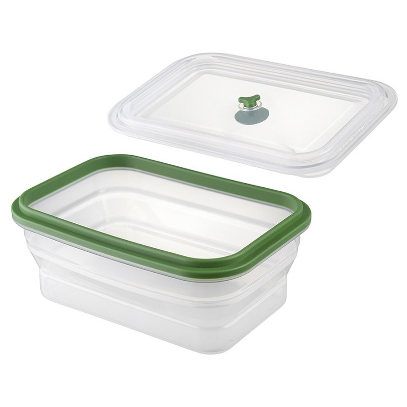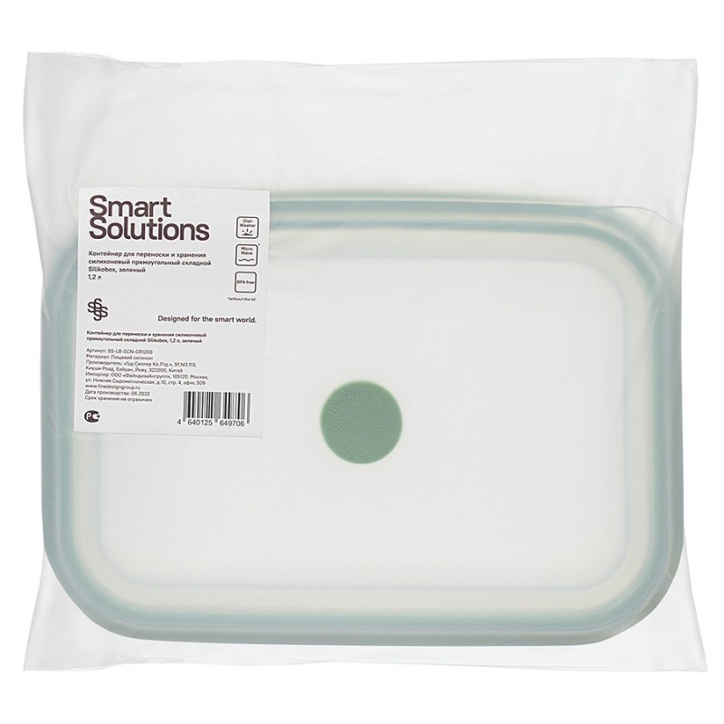 Контейнер Silikobox от бренда Smart Solutions – удобное и практичное решение для хранения, переноски продуктов и готовой еды. Емкость и крышка изготовлены из платинового силикона высочайшего качества, соответствующего немецкому стандарту сертификации LFGB.Особенности и преимущества:- Все элементы выполнены из экологичного, безвредного для здоровья платинового силикона Pure Silicon, используемого для изготовления детской посуды. - Продукт прошел проверку на отсутствие в составе вредных веществ, таких как тяжелые металлы и Бисфенол-А, по строжайшей европейской программе сертификации LFGB. - Не имеет запаха, не меняет вкус продуктов, не выделяет токсичных веществ, не боится нагрева и заморозки, обеспечивает равномерное прогревание блюд. - Обладает высокой прочностью, эластичностью, устойчивостью к деформации под воздействием высоких и низких температур. - Идеально подходит для многоразового использования, так как легко очищается от загрязнений и не теряет свои первоначальные качества. - Долго сохраняет еду свежей, способствуя здоровому образу жизни и сбалансированному питанию. - Благодаря уникальной складной конструкции и герметичной крышке его удобно хранить и носить с собой. - Материал отличается антипригарными свойствами, отталкивает воду и бактерии, обеспечивая максимальную гигиеничность и безопасную эксплуатацию. - Мы проявляем заботу об окружающей среде, поэтому наш контейнер поставляется в биоразлагаемом пакете.Материал: пищевой силикон. Размеры: 20,5х14,5х8,5 см. Размеры в сложенном виде: 20,5х14,5х3,6 см. Объем: 1,2 л. Цвет: зеленый.Контейнер можно мыть вручную и в посудомоечной машине. Допускается заморозка до - 60 °C, использование в микроволновой печи и духовке при температуре до +230°С.