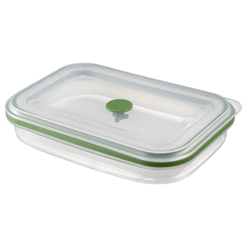 Контейнер Silikobox от бренда Smart Solutions – удобное и практичное решение для хранения, переноски продуктов и готовой еды. Емкость и крышка изготовлены из платинового силикона высочайшего качества, соответствующего немецкому стандарту сертификации LFGB.Особенности и преимущества:- Все элементы выполнены из экологичного, безвредного для здоровья платинового силикона Pure Silicon, используемого для изготовления детской посуды. - Продукт прошел проверку на отсутствие в составе вредных веществ, таких как тяжелые металлы и Бисфенол-А, по строжайшей европейской программе сертификации LFGB. - Не имеет запаха, не меняет вкус продуктов, не выделяет токсичных веществ, не боится нагрева и заморозки, обеспечивает равномерное прогревание блюд. - Обладает высокой прочностью, эластичностью, устойчивостью к деформации под воздействием высоких и низких температур. - Идеально подходит для многоразового использования, так как легко очищается от загрязнений и не теряет свои первоначальные качества. - Долго сохраняет еду свежей, способствуя здоровому образу жизни и сбалансированному питанию. - Благодаря уникальной складной конструкции и герметичной крышке его удобно хранить и носить с собой. - Материал отличается антипригарными свойствами, отталкивает воду и бактерии, обеспечивая максимальную гигиеничность и безопасную эксплуатацию. - Мы проявляем заботу об окружающей среде, поэтому наш контейнер поставляется в биоразлагаемом пакете.Материал: пищевой силикон. Размеры: 20,5х14,5х8,5 см. Размеры в сложенном виде: 20,5х14,5х3,6 см. Объем: 1,2 л. Цвет: зеленый.Контейнер можно мыть вручную и в посудомоечной машине. Допускается заморозка до - 60 °C, использование в микроволновой печи и духовке при температуре до +230°С.