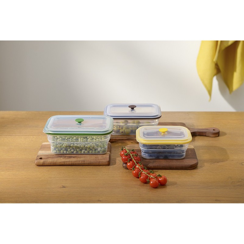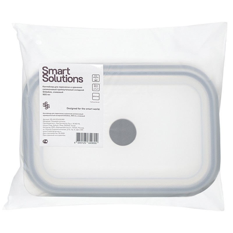 Контейнер Silikobox от бренда Smart Solutions – удобное и практичное решение для хранения, переноски продуктов и готовой еды. Емкость и крышка изготовлены из платинового силикона высочайшего качества, соответствующего немецкому стандарту сертификации LFGB.Особенности и преимущества:- Все элементы выполнены из экологичного, безвредного для здоровья платинового силикона Pure Silicon, используемого для изготовления детской посуды. - Продукт прошел проверку на отсутствие в составе вредных веществ, таких как тяжелые металлы и Бисфенол-А, по строжайшей европейской программе сертификации LFGB. - Не имеет запаха, не меняет вкус продуктов, не выделяет токсичных веществ, не боится нагрева и заморозки, обеспечивает равномерное прогревание блюд. - Обладает высокой прочностью, эластичностью, устойчивостью к деформации под воздействием высоких и низких температур. - Идеально подходит для многоразового использования, так как легко очищается от загрязнений и не теряет свои первоначальные качества. - Долго сохраняет еду свежей, способствуя здоровому образу жизни и сбалансированному питанию. - Благодаря уникальной складной конструкции и герметичной крышке его удобно хранить и носить с собой. - Материал отличается антипригарными свойствами, отталкивает воду и бактерии, обеспечивая максимальную гигиеничность и безопасную эксплуатацию. - Мы проявляем заботу об окружающей среде, поэтому наш контейнер поставляется в биоразлагаемом пакете.Материал: пищевой силикон. Размеры: 19х13х7,7 см. Размеры в сложенном виде: 19х13х3,4 см. Объем: 900 мл. Цвет: темно-сливовый.Контейнер можно мыть вручную и в посудомоечной машине. Допускается заморозка до - 60 °C, использование в микроволновой печи и духовке при температуре до +230°С.