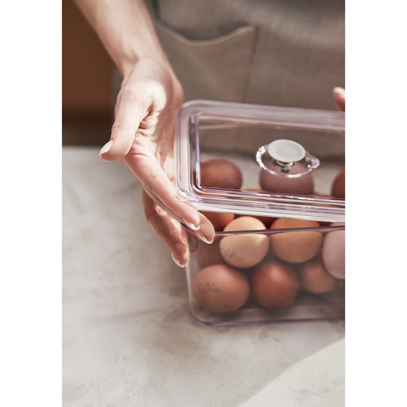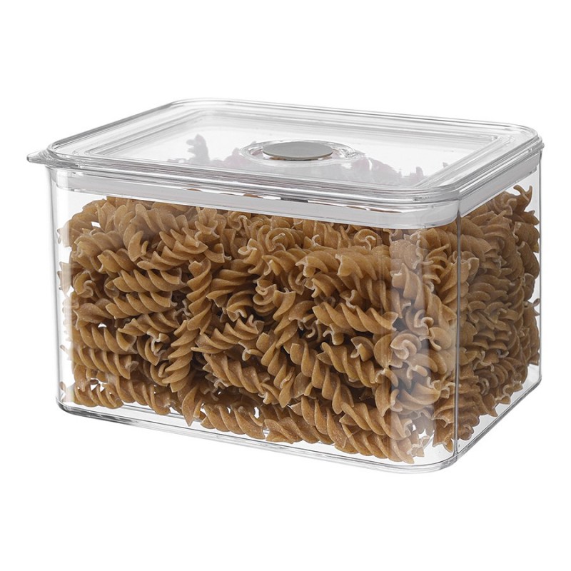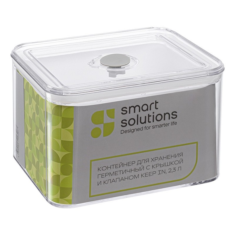 Контейнер герметичный Keep in от бренда Smart Solutions поможет сохранить свежесть продуктов в течение длительного времени. Он идеально подойдет для хранения фруктов, овощей и готовой еды в холодильнике, а также для круп, муки, макаронных изделий, орехов, сухофруктов, приправ и многого другого.Особенности и преимущества:- Контейнер выполнен из SAN-пластика, который обладает высокой прочностью, не впитывает запахи и не вступает в химическую реакцию с продуктами. - Прозрачные стенки позволяют видеть содержимое, исключая необходимость каждый раз открывать крышку. - Крышка по периметру оснащена силиконовым уплотнителем, благодаря чему обеспечивает плотное закрывание. - Наличие специального клапана дает возможность выпустить из емкости лишний воздух, что улучшает герметизацию. - Современный минималистичный дизайн делает контейнер прекрасным дополнением любого кухонного интерьера.Материалы: пластик SAN, силикон. Размеры: 18,5х14,5х11,5 см. Объем: 2,3 л.Контейнер можно мыть в посудомоечной машине и подвергать заморозке. Запрещается использование в микроволновой печи.