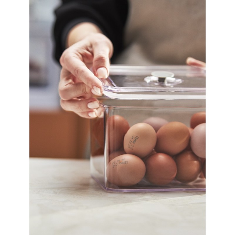 Контейнер герметичный Keep in от бренда Smart Solutions поможет сохранить свежесть продуктов в течение длительного времени. Он идеально подойдет для хранения фруктов, овощей и готовой еды в холодильнике, а также для круп, муки, макаронных изделий, орехов, сухофруктов, приправ и многого другого.Особенности и преимущества:- Контейнер выполнен из SAN-пластика, который обладает высокой прочностью, не впитывает запахи и не вступает в химическую реакцию с продуктами. - Прозрачные стенки позволяют видеть содержимое, исключая необходимость каждый раз открывать крышку. - Крышка по периметру оснащена силиконовым уплотнителем, благодаря чему обеспечивает плотное закрывание. - Наличие специального клапана дает возможность выпустить из емкости лишний воздух, что улучшает герметизацию. - Современный минималистичный дизайн делает контейнер прекрасным дополнением любого кухонного интерьера.Материалы: пластик SAN, силикон. Размеры: 18,5х14,5х11,5 см. Объем: 2,3 л.Контейнер можно мыть в посудомоечной машине и подвергать заморозке. Запрещается использование в микроволновой печи.