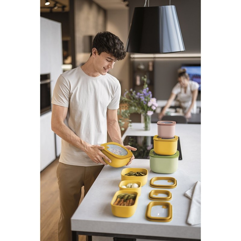 Пищевой контейнер Store&More объемом 1,55 л идеально подходит для использования дома и на открытом воздухе. Посуда предназначена для хранения продуктов в холодильнике или морозильной камере, нагрева в микроволновой печи, транспортировки и подачи блюд. Идея создания пищевого контейнера в форме куба с плавными обтекаемыми углами принадлежит дизайнерской студии Spalvieri & Del Ciotto.Для изготовления емкости мастера используют экологически чистый полипропилен высокой жесткости. Контейнер устойчив к пищевым кислотам и резкой смене температур. Герметичная крышка из термопластичной резины надежно фиксируется и препятствует просыпанию или переливанию еды, что немаловажно для удобной транспортировки. Контейнер можно мыть в посудомоечной машине.