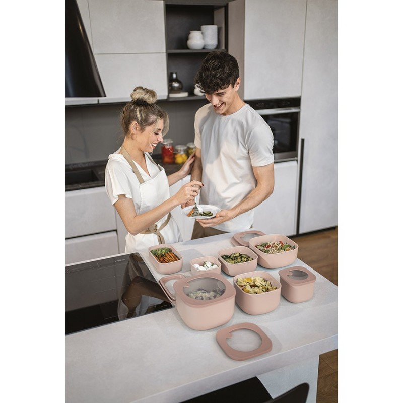 Пищевой контейнер Store&More объемом 975 мл идеально подходит для использования дома и на открытом воздухе. Посуда предназначена для хранения продуктов в холодильнике или морозильной камере, нагрева в микроволновой печи, транспортировки и подачи блюд. Идея создания пищевого контейнера в форме куба с плавными обтекаемыми углами принадлежит дизайнерской студии Spalvieri & Del Ciotto.Для изготовления емкости мастера используют экологически чистый полипропилен высокой жесткости. Контейнер устойчив к пищевым кислотам и резкой смене температур. Герметичная крышка из термопластичной резины надежно фиксируется и препятствует просыпанию или переливанию еды, что немаловажно для удобной транспортировки. Контейнер можно мыть в посудомоечной машине.