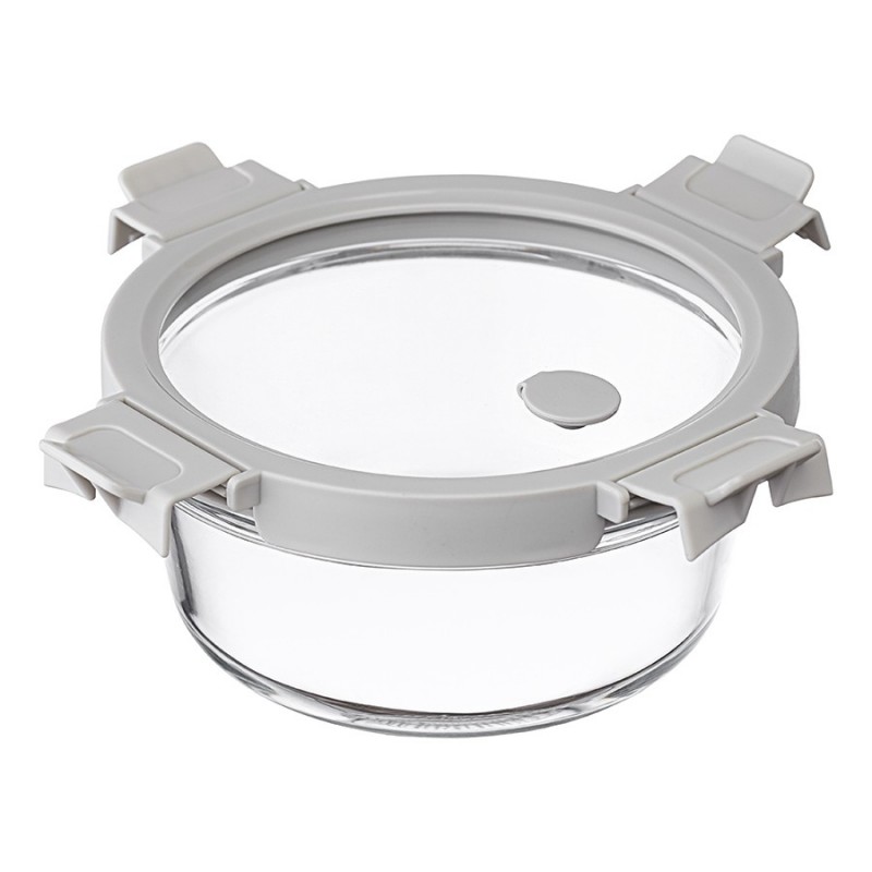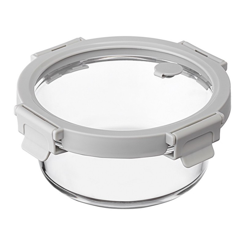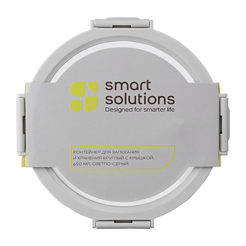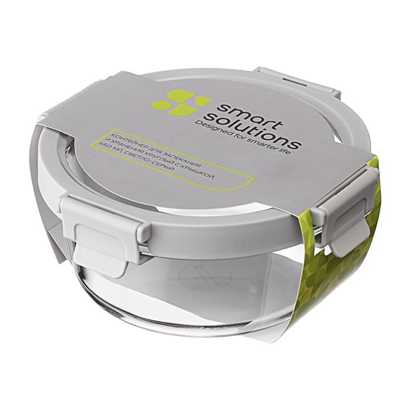 Контейнер круглый от бренда Smart Solution – готовое решение для хранения продуктов и приготовления различных блюд в духовке. Емкость из прочного боросиликатного стекла не боится перепадов температуры, обладает устойчивостью к износу и химическим воздействиям, легко моется. Материал не содержит токсинов и бисфенола-А, не имеет запаха, не меняет вкус еды. Крышка защищает содержимое от заветривания и попадания внутрь посторонних предметов. Наличие специального вентиляционного отверстия позволяет выпустить из контейнера лишний воздух или горячий пар, что повышает герметичность и улучшает условия хранения продуктов.Материалы: боросиликатное стекло, пластик. Размеры: 16х16х7,5 см. Объем: 650 мл. Цвет крышки: светло-серый.Можно мыть в посудомоечной машине, ставить в морозильную камеру и микроволновую печь. В духовке использовать без крышки при температуре до 560?.