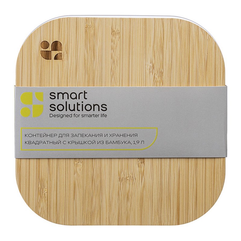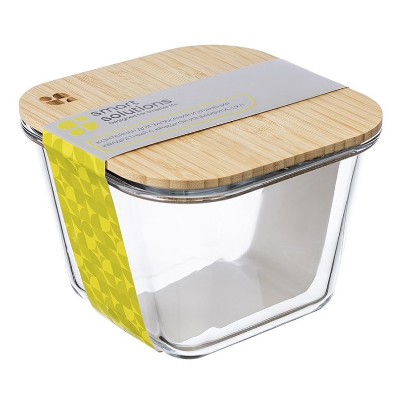 Контейнер с бамбуковой крышкой от бренда Smart Solutions идеально подойдет для хранения продуктов и готовой еды, а также для запекания блюд в духовке.Особенности и преимущества:- Контейнер из боросиликатного стекла устойчив к температурным перепадам, механическим повреждениям, легко очищается после использования. - Материал является безопасным для здоровья, не вступает в реакцию с продуктами, не содержит вредных соединений, в том числе Бисфенола-А. - Крышка из натурального бамбука с силиконовой вставкой обеспечивает плотное закрывание.Материалы: боросиликатное стекло, бамбук, силикон. Объем: 1,9 л.Можно мыть в посудомоечной машине, замораживать, использовать в микроволновой печи и духовке при температуре до 560? без крышки. Крышку рекомендуется протирать влажной тканью. Запрещается применение абразивных материалов и агрессивной бытовой химии.