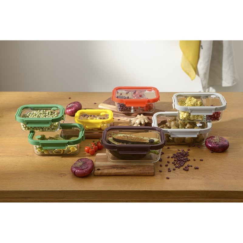 Контейнер из боросиликатного стекла от бренда Smart Solution – готовое решение для хранения продуктов и приготовления различных блюд в духовке.Особенности и преимущества:- Емкость из прочного боросиликатного стекла не боится перепадов температуры, обладает устойчивостью к износу и химическим воздействиям, легко моется. - Материал не содержит токсинов и бисфенола-А, не имеет запаха, не меняет вкус еды. - Крышка защищает содержимое от заветривания и попадания внутрь пыли и влаги. - Наличие специального вентиляционного отверстия позволяет выпустить из контейнера лишний воздух или горячий пар, что повышает герметичность и улучшает условия хранения продуктов.Материалы: боросиликатное стекло, полипропилен, силикон. Размеры: 16х21х7,5 см. Объем: 1 л. Цвет крышки: зеленый.Можно мыть в посудомоечной машине, ставить в морозильную камеру и микроволновую печь. В духовке использовать без крышки при температуре до 560?.