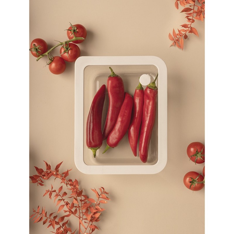 Стеклянный контейнер от бренда Smart Solutions – удобная емкость для хранения продуктов и приготовления блюд в духовке. Крышка контейнера имеет специальное отверстие, через которое можно удалить воздух для создания вакуумного эффекта – это поможет еде дольше оставаться свежей и сохранять свои полезные свойства.Особенности и преимущества:- Боросиликатное стекло устойчиво к температурным перепадам, повреждениям, не впитывает запахи, сохраняет прозрачность и гигиеничность долгие годы. - Крышка с силиконовым ободком плотно прилегает и оснащена специальным отверстием для вывода пара и воздуха. - Материалы не содержат вредных соединений, благодаря чему контейнер идеально подходит для хранения и приготовления пищи. - Вакуумный эффект обеспечивает герметичность, защищая продукты от попадания воздуха и влаги, что продлевает срок их хранения.Материалы: боросиликатное стекло, силикон. Размеры: 18х22,5х6,5 см. Объем: 1,4 л. Цвет: молочный.Можно мыть в посудомоечной машине, ставить в морозильную камеру и микроволновую печь. В духовке использовать без крышки при температуре до 560?.