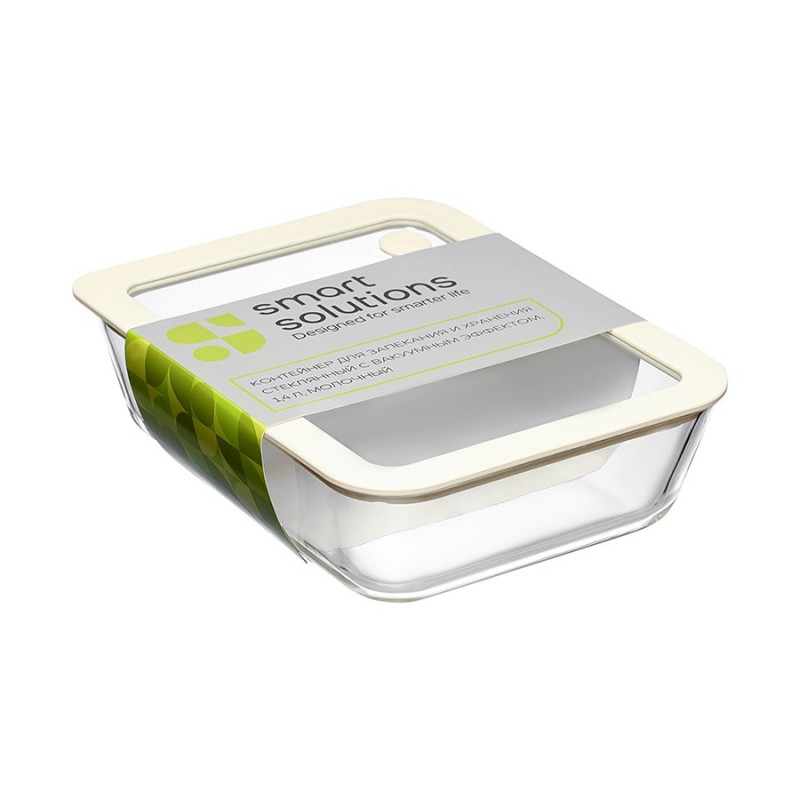 Стеклянный контейнер от бренда Smart Solutions – удобная емкость для хранения продуктов и приготовления блюд в духовке. Крышка контейнера имеет специальное отверстие, через которое можно удалить воздух для создания вакуумного эффекта – это поможет еде дольше оставаться свежей и сохранять свои полезные свойства.Особенности и преимущества:- Боросиликатное стекло устойчиво к температурным перепадам, повреждениям, не впитывает запахи, сохраняет прозрачность и гигиеничность долгие годы. - Крышка с силиконовым ободком плотно прилегает и оснащена специальным отверстием для вывода пара и воздуха. - Материалы не содержат вредных соединений, благодаря чему контейнер идеально подходит для хранения и приготовления пищи. - Вакуумный эффект обеспечивает герметичность, защищая продукты от попадания воздуха и влаги, что продлевает срок их хранения.Материалы: боросиликатное стекло, силикон. Размеры: 18х22,5х6,5 см. Объем: 1,4 л. Цвет: молочный.Можно мыть в посудомоечной машине, ставить в морозильную камеру и микроволновую печь. В духовке использовать без крышки при температуре до 560?.