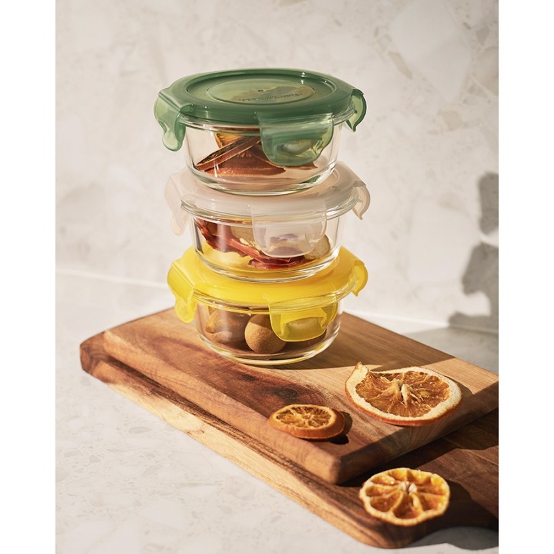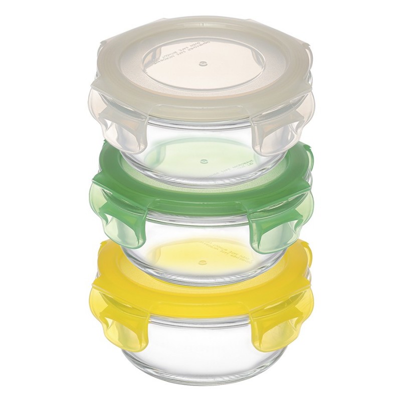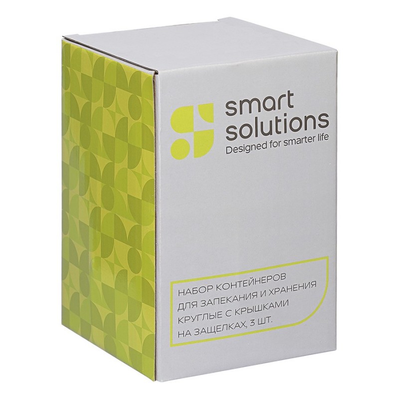 Набор из 3-х стеклянных контейнеров от бренда Smart Solutions поможет сохранить продукты свежими и позволит навести порядок в холодильнике.Особенности и преимущества:- Емкости выполнены из прочного, химически инертного боросиликатного стекла, устойчивого к износу и внешним воздействиям. - Пластиковые крышки имеют силиконовый ободок по периметру для плотного прилегания и надежные защелки, которые гарантируют 100% герметичность. - Материалы не содержат вредных веществ и бисфенола-А.Материалы: боросиликатное стекло, полипропилен, силикон. Объем контейнеров: 210 мл. Количество в наборе: 3 шт.Можно мыть в посудомоечной машине на верхней полке, ставить в морозильную камеру и микроволновую печь. В духовке использовать без крышки при температуре до 560?.