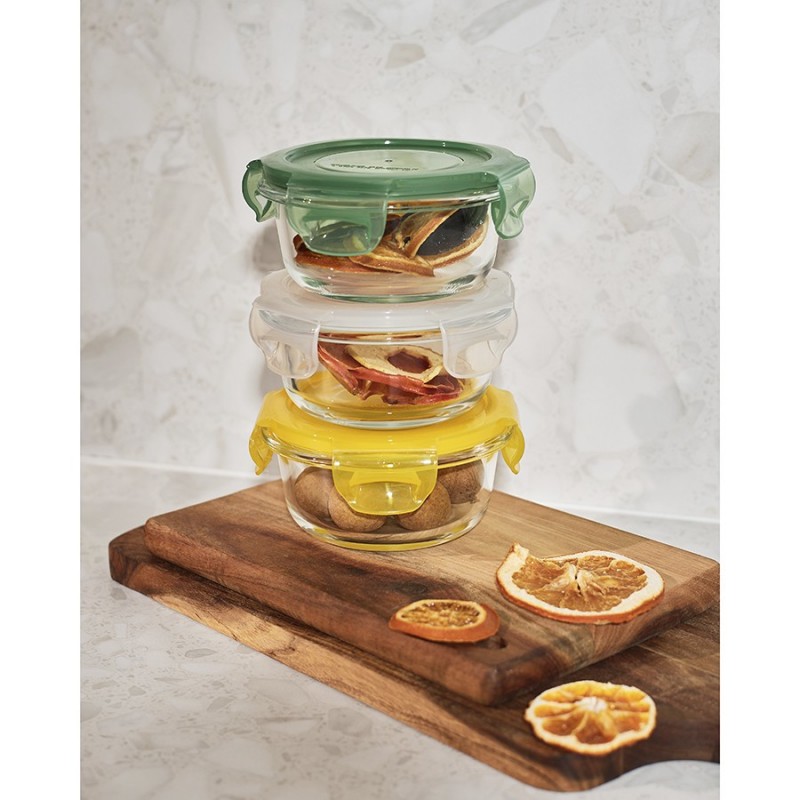 Набор из 3-х стеклянных контейнеров от бренда Smart Solutions поможет сохранить продукты свежими и позволит навести порядок в холодильнике.Особенности и преимущества:- Емкости выполнены из прочного, химически инертного боросиликатного стекла, устойчивого к износу и внешним воздействиям. - Пластиковые крышки имеют силиконовый ободок по периметру для плотного прилегания и надежные защелки, которые гарантируют 100% герметичность. - Материалы не содержат вредных веществ и бисфенола-А.Материалы: боросиликатное стекло, полипропилен, силикон. Объем контейнеров: 210 мл. Количество в наборе: 3 шт.Можно мыть в посудомоечной машине на верхней полке, ставить в морозильную камеру и микроволновую печь. В духовке использовать без крышки при температуре до 560?.