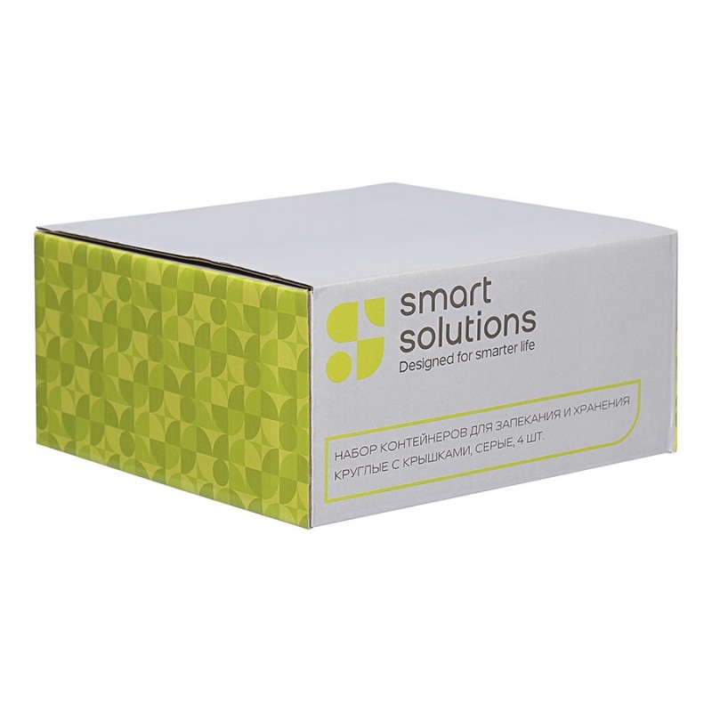 Контейнеры от бренда Smart Solutions – готовое решение для хранения продуктов и приготовления различных блюд в духовке.Особенности и преимущества:- Емкости из прочного боросиликатного стекла не боятся перепадов температуры, обладают устойчивостью к износу и химическим воздействиям, легко моются. - Материал не содержит токсинов и бисфенола-А, не имеет запаха, не меняет вкус еды. - Крышки защищают содержимое от заветривания и попадания внутрь посторонних предметов. Их также можно докупить отдельно, в нужном цвете.Материалы: боросиликатное стекло, полиэтилен. Объемы: 236 мл, 472 мл, 944 мл, 1,6 л. Количество предметов в наборе: 4 шт.Можно мыть в посудомоечной машине, ставить в морозильную камеру и микроволновую печь. В духовке использовать без крышки при температуре до 560?.