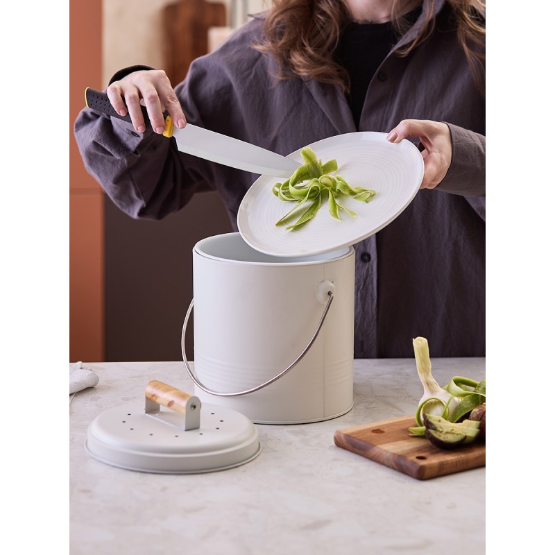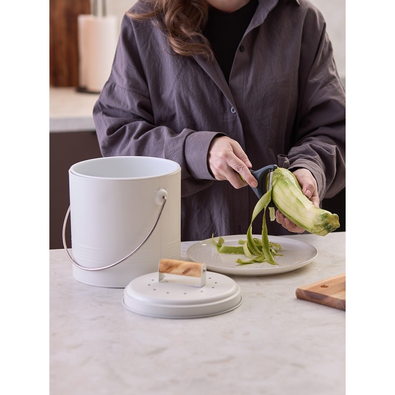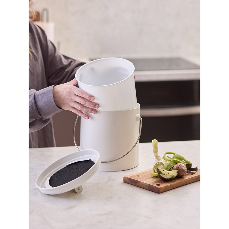 Контейнер для пищевых отходов Irmel – стильное и практичное решение для всех, кто стремится к более экологичному и осознанному образу жизни. С ним вы сможете легко и удобно сортировать мусор, сохраняя чистоту и порядок на кухне.Особенности и преимущества:- Использование в изготовлении углеродистой стали увеличенной толщины гарантирует контейнеру отличные эксплуатационные характеристики – устойчивость к повреждениям, износу и простой уход. - Порошковое покрытие защищает металлическую поверхность от коррозии и обеспечивает изделию дополнительную прочность. - В крышке предусмотрен специальный угольный фильтр, который поглощает неприятные запахи. - Внутренний пластиковый контейнер легко вынимается и очищается от загрязнений, что делает процесс утилизации отходов максимально удобным.Материалы: углеродистая сталь. Размеры: 18x18х23 см. Объем: 3,5 л. Цвет: молочный.Металлический контейнер можно очищать при помощи мягкого влажного материала, после чего сразу вытирать насухо. Контейнер из пластика можно мыть вручную в теплой мыльной воде. Запрещается использование абразивов и агрессивной бытовой химии.