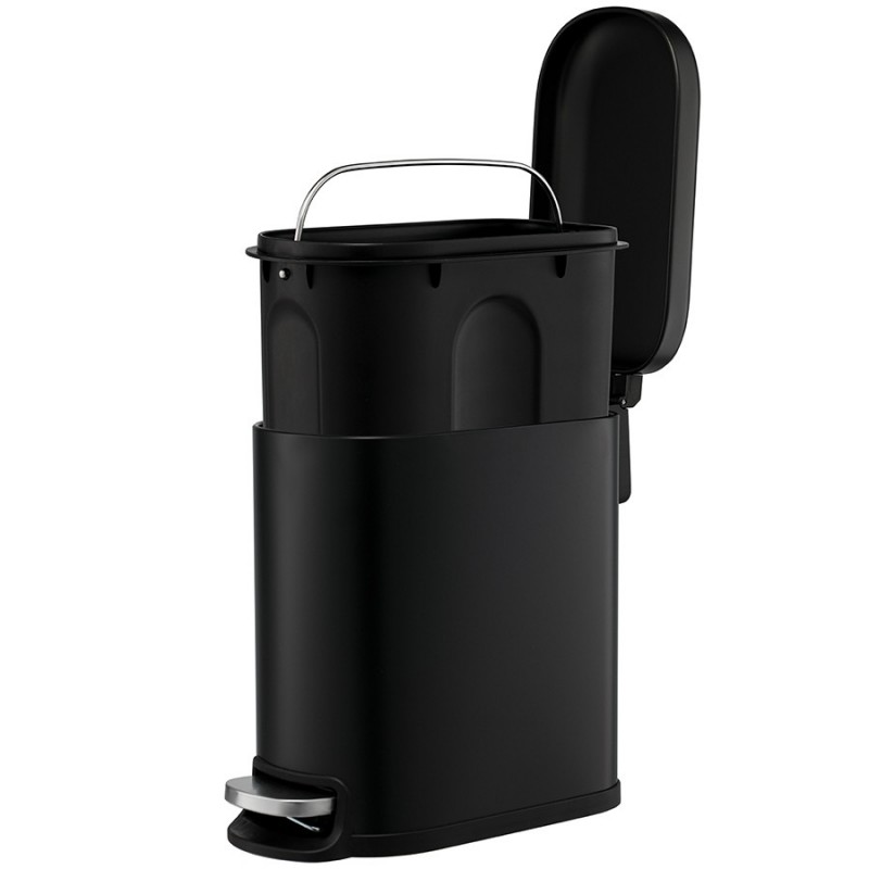 Мусорное ведро от Smart Solutions – отличное решение для дома и офиса.Особенности и преимущества:- Высококачественная углеродистая сталь с порошковым покрытием делает ведро практичным и долговечным, гарантирует защиту от коррозии. - Внутренний съемный контейнер из полипропилена обеспечивает простое обслуживание и хорошо очищается даже от стойких загрязнений. - Благодаря педали вы можете легко открывать крышку, даже когда руки заняты, что особенно удобно при готовке или уборке. - Ведро с современным дизайном в нейтральной цветовой гамме органично смотрится в любом пространстве.Материалы: углеродистая сталь с порошковым покрытием, полипропилен. Размеры: 14х27х29 см. Длина с педалью: 30 см. Объем: 5 л. Цвет: графит.Внутренний контейнер из полипропилена можно мыть в теплой мыльной воде при помощи мягкой губки. Корпус из углеродистой стали можно очищать от пыли и загрязнений влажной салфеткой. Запрещается использование абразивных материалов и агрессивной бытовой химии.