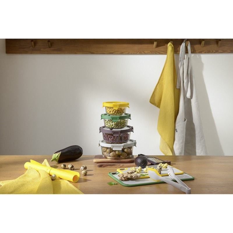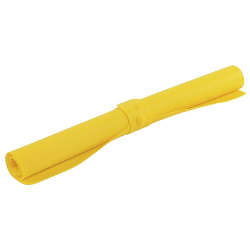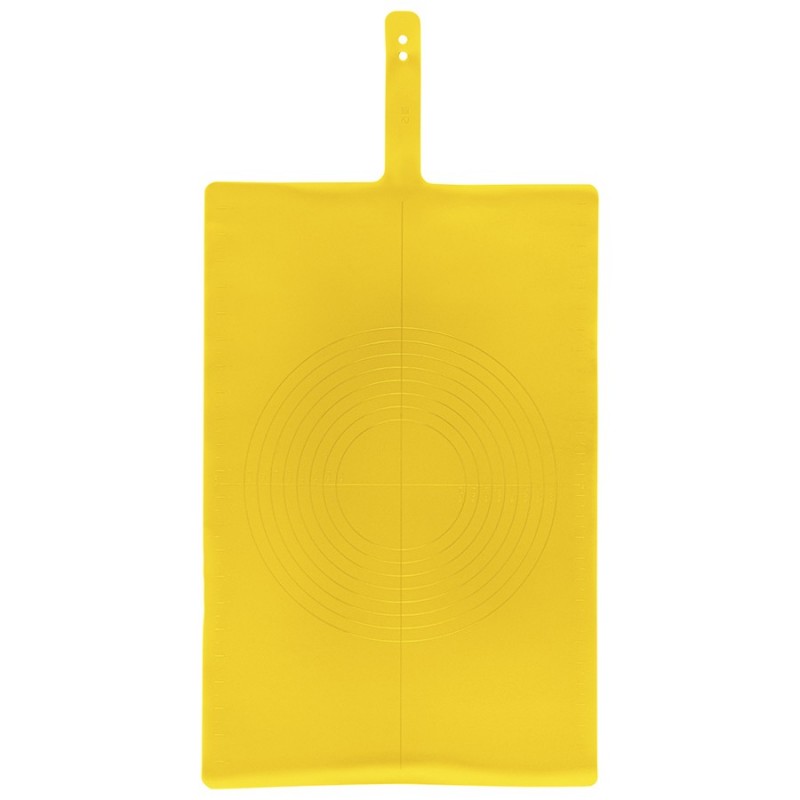 Коврик Foss защитит стол от загрязнений во время замешивания теста. Изделие выполнено из пищевого силикона – экологичного материала, который не имеет запаха и легко очищается после использования. Аксессуар не скользит по рабочей поверхности, а также позволяет не добавлять масло и муку для предотвращения прилипания густой массы. Наличие разметки помогает получить пласт теста идеальной формы и размера. Для компактного хранения коврик легко сворачивается и надежно закрепляется в собранном виде специальным фиксирующим ремешком.Материал: силикон. Размеры: 37,7х57,4 см. Цвет: желтый.Можно использовать в микроволновой печи и мыть в посудомоечной машине.