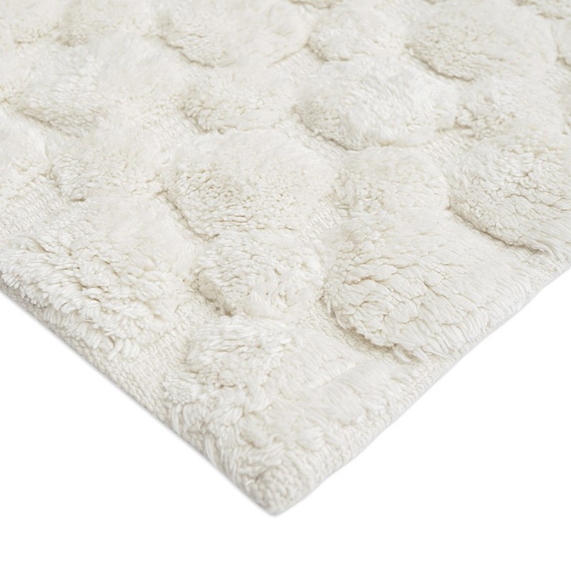 Коврик для ванной белого цвета Bubbles из коллекции Essential понравится ценителям натуральных материалов, поклонникам эко-стиля и необычного дизайна. Изделие из 100% хлопка не вызывает аллергических реакций, не электризуется, легко чистится и сохраняет привлекательный вид долгие годы. Материал быстро впитывает влагу, оставляя ощущение свежести и чистоты. Объемный узор создает рельефную поверхность, на которую приятно вставать босыми ногами.Размер: 50х80 см. Плотность: 1500 г/м2.! Деликатная стирка при максимальной температуре 30° C ! Гладить запрещено ! Возможна барабанная сушка при низкой температуре ! Не отбеливать ! Сухая чистка запрещенаДля чистки коврика пылесосом используйте стандартную щетку. Применение турбощетки категорически запрещается.