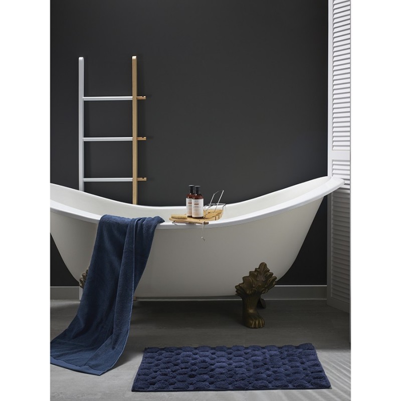 Коврик для ванной темно-синего цвета Bubbles из коллекции Essential понравится ценителям натуральных материалов, поклонникам эко-стиля и необычного дизайна. Изделие из 100% хлопка не вызывает аллергических реакций, не электризуется, легко чистится и сохраняет привлекательный вид долгие годы. Материал быстро впитывает влагу, оставляя ощущение свежести и чистоты. Объемный узор создает рельефную поверхность, на которую приятно вставать босыми ногами.Размер: 50х80 см. Плотность: 1500 г/м2.! Деликатная стирка при максимальной температуре 30° C ! Гладить запрещено ! Возможна барабанная сушка при низкой температуре ! Не отбеливать ! Сухая чистка запрещенаДля чистки коврика пылесосом используйте стандартную щетку. Применение турбощетки категорически запрещается.