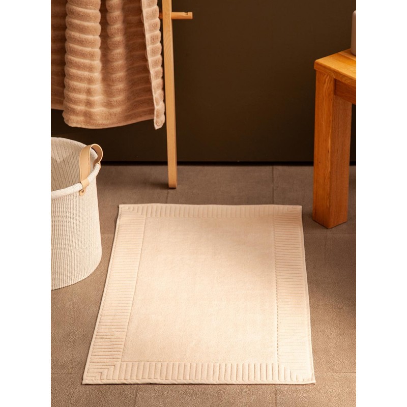 Коврик кремового цвета с фактурным бортиком из коллекции Essential – стильное дополнение к интерьеру современной ванной комнаты. Выполненный в нейтральном оттенке, он прекрасно сочетается с отделкой и мебелью в любых тонах, создавая ощущение комфорта, уюта и чистоты.Особенности и преимущества:- Коврик из 100% хлопка хорошо пропускает воздух, благодаря чему быстро сохнет, предотвращая образование плесени и неприятных запахов. - Натуральный материал обеспечивает приятные тактильные ощущения, создавая комфорт при выходе из ванны или душа. - На обратной стороне коврика предусмотрены специальные протекторы, предотвращающие скольжение. - Лаконичный дизайн и нейтральный оттенок позволяют легко интегрировать коврик из коллекции Essential в интерьер с любым оформлением.Материал: 100% хлопок. Размеры: 50x80 см. Плотность: 850 г/м2. ! Максимальная температура стирки 40° C ! ! Гладить при максимальной температуре 110° C ! Барабанная сушка запрещена ! Не отбеливать ! Сухая чистка запрещена