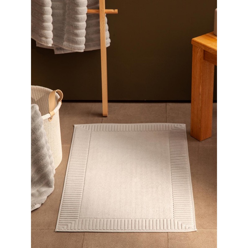 Коврик светло-серого цвета с фактурным бортиком из коллекции Essential – стильное дополнение к интерьеру современной ванной комнаты. Выполненный в нейтральном оттенке, он прекрасно сочетается с отделкой и мебелью в любых тонах, создавая ощущение комфорта, уюта и чистоты.Особенности и преимущества:- Коврик из 100% хлопка хорошо пропускает воздух, благодаря чему быстро сохнет, предотвращая образование плесени и неприятных запахов. - Натуральный материал обеспечивает приятные тактильные ощущения, создавая комфорт при выходе из ванны или душа. - На обратной стороне коврика предусмотрены специальные протекторы, предотвращающие скольжение. - Лаконичный дизайн и нейтральный оттенок позволяют легко интегрировать коврик из коллекции Essential в интерьер с любым оформлением.Материал: 100% хлопок. Размеры: 50x80 см. Плотность: 850 г/м2. ! Максимальная температура стирки 40° C ! ! Гладить при максимальной температуре 110° C ! Барабанная сушка запрещена ! Не отбеливать ! Сухая чистка запрещена