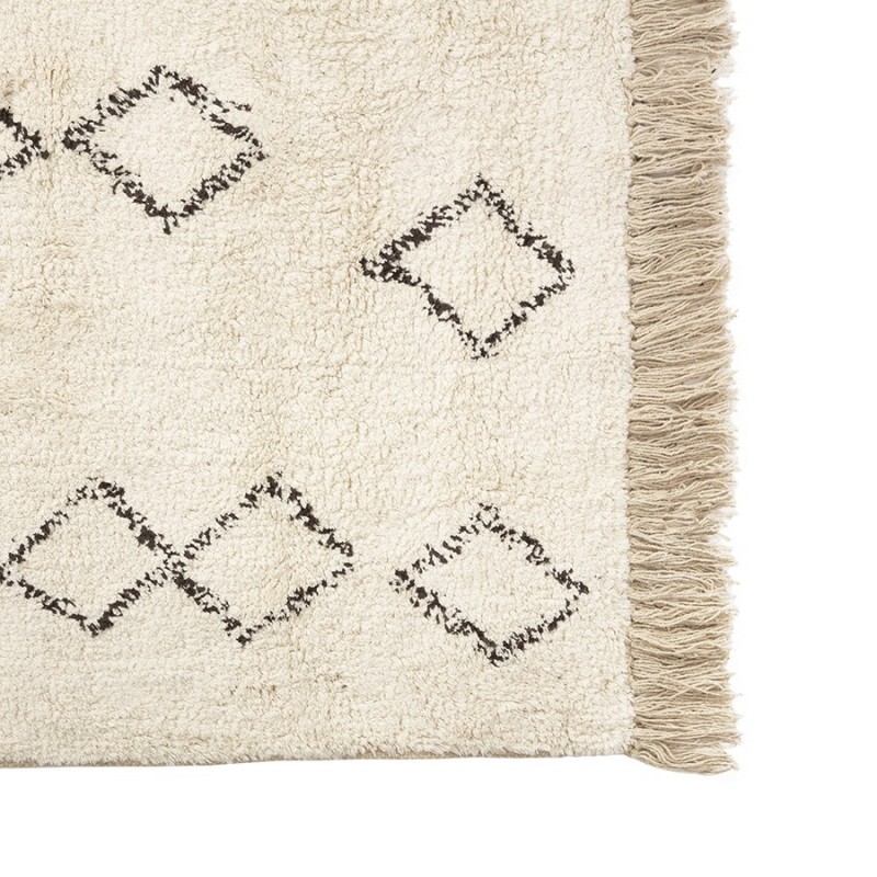 Одним из главных преимуществ берберского ковра из коллекции Ethnic является его универсальность. Благодаря спокойной цветовой гамме и ненавязчивому геометрическому узору такое напольное покрытие отлично сочетается с различными дизайнерскими решениями, добавляя в интерьер колоритные этнические нотки. Изготовленное из прочного и долговечного хлопка, изделие легко чистится и сохраняет первозданный вид на протяжении долгих лет. Материал является экологичным, имеет приятную на ощупь фактуру. Сочетание стиля, качества и практичности делает этот ковер отличным дополнением гостиной, спальни, кабинета и любой другой комнаты в доме или квартире. Размеры изделия указаны без учета бахромы и декоративных элементов. Фактические размеры ковра могут незначительно отличаться в пределах 3-5 см.Размеры: 200х300 см. Плотность: 1600 г/м2. Высота ворса: 6 мм. Подложка: нет.! Стирка запрещена ! Гладить запрещено ! Барабанная сушка запрещена ! Не отбеливать ! Сухая чистка запрещена ! Допускается ручная чистка пятенРекомендуем незамедлительно удалять любые загрязнения. Для этого используйте бумажные салфетки или ткань с мыльным раствором воды. Регулярно чистите ковер пылесосом. Не применяйте турбощетку или щетку с жестким ворсом. Если появилась зацепка, не вытягивайте нити из ковра. Для их удаления воспользуйтесь ножницами. Стелите ковер на подложку, чтобы продлить срок его службы и защитить напольное покрытие. Небольшое количество ворса может выпадать – это нормально для ковров из натуральных материалов. Обращаем внимание, что острые предметы, открытый огонь, теплая поверхность и чрезмерная влажность могут испортить внешний вид и негативно повлиять на качественные характеристики изделия.Небольшая разница в цвете и фактуре текстиля в разных частях ковра делает каждое изделие уникальным. После вскрытия упаковки ковер в течение некоторого времени может сохранять элементы деформации вследствие долгого нахождения в скрученном виде, но уже через 1-2 недели он полностью выпрямится. Ковер может выцветать под воздействием прямых солнечных лучей. Рекомендуем периодически менять расположение изделия, чтобы цвет менялся равномерно.