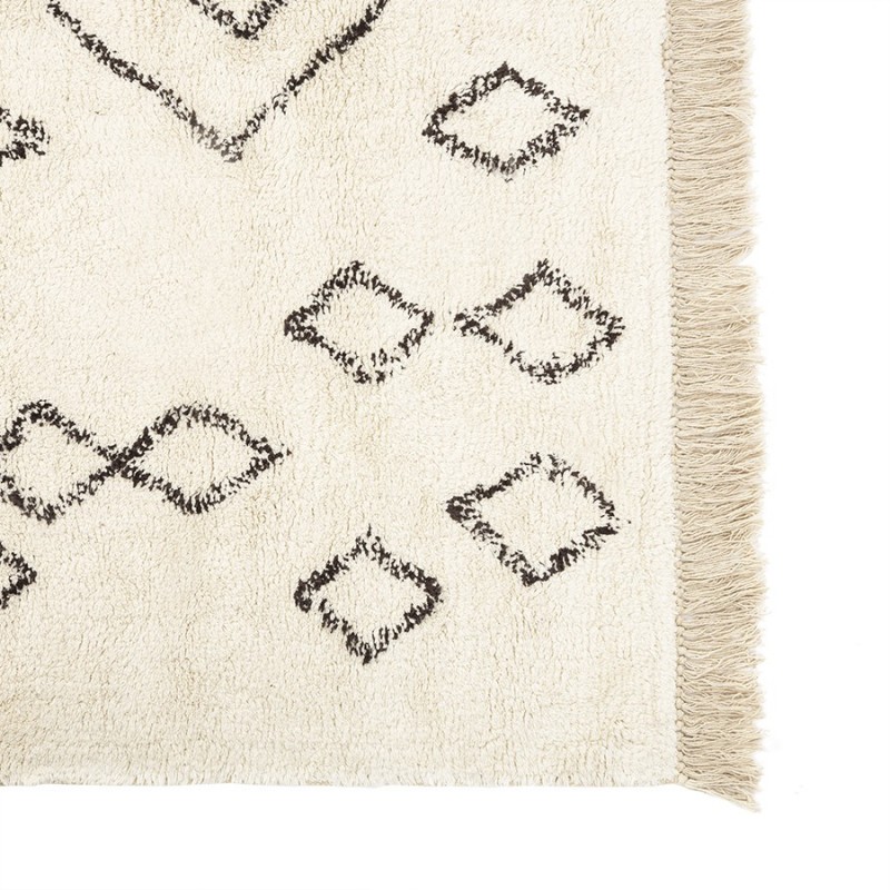 Одним из главных преимуществ берберского ковра из коллекции Ethnic является его универсальность. Благодаря спокойной цветовой гамме и ненавязчивому геометрическому узору такое напольное покрытие отлично сочетается с различными дизайнерскими решениями, добавляя в интерьер колоритные этнические нотки. Изготовленное из прочного и долговечного хлопка, изделие легко чистится и сохраняет первозданный вид на протяжении долгих лет. Материал является экологичным, имеет приятную на ощупь фактуру. Сочетание стиля, качества и практичности делает этот ковер отличным дополнением гостиной, спальни, кабинета и любой другой комнаты в доме или квартире.Размеры изделия указаны без учета бахромы и декоративных элементов. Фактические размеры ковра могут незначительно отличаться в пределах 3-5 см.Материал: 100% хлопок. Размеры: 160х230 см.! Стирка запрещена ! ! Гладить запрещено ! Барабанная сушка запрещена ! Не отбеливать ! Сухая чистка запрещена ! Допускается ручная чистка пятенРекомендуем незамедлительно удалять любые загрязнения. Используйте бумажные салфетки или ткань с использованием мыла или мягкого специализированного средства. Регулярно чистите ковер пылесосом. Не используйте турбощетку или щетку с жестким ворсом. Если появилась зацепка, не вытягивайте нити из ковра, чтобы их удалить используйте ножницы. Стелите ковер на подложку, чтобы продлить срок его службы и защитить напольное покрытие. Небольшое количество ворса может выпадать, это нормально для ковров из натуральных материалов. Обращаем внимание, что острые предметы, открытый огонь, теплая поверхность и чрезмерная влажность могут испортить внешний вид и характеристики изделия.