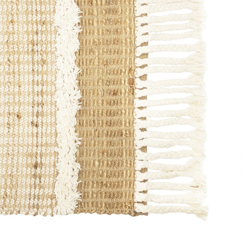 Ковер Mumbai из коллекции Ethnic поможет в создании стильного и уютного пространства с теплой домашней атмосферой. Сочетание джута и шерсти обеспечивает изделию отличные эксплуатационные характеристики. Джут известен своей прочностью и долговечностью. Шерсть обладает хорошими звукоизоляционными свойствами, что позволяет снизить уровень шума в помещении. Натуральные материалы гарантируют безопасное использование, простой уход, не вызывают аллергию. Узоры на ковре красиво сменяют друг друга, захватывая воображение и создавая ощущение движения и ритма. Декор в виде бахромы придает дизайну особый шарм.Размеры изделия указаны без учета бахромы и декоративных элементов. Фактические размеры ковра могут незначительно отличаться в пределах 3-5 см.Размеры: 120х180 см. Плотность: 1800 г/м2. Высота ворса: 30 мм. Подложка: нет.! Стирка запрещена ! Гладить запрещено ! Барабанная сушка запрещена ! Не отбеливать ! Сухая чистка запрещена ! Допускается ручная чистка пятенРекомендуем незамедлительно удалять любые загрязнения. Для этого используйте бумажные салфетки или ткань с мыльным раствором воды. Регулярно чистите ковер пылесосом. Не применяйте турбощетку или щетку с жестким ворсом. Если появилась зацепка, не вытягивайте нити из ковра. Для их удаления воспользуйтесь ножницами. Стелите ковер на подложку, чтобы продлить срок его службы и защитить напольное покрытие. Небольшое количество ворса может выпадать – это нормально для ковров из натуральных материалов. Обращаем внимание, что острые предметы, открытый огонь, теплая поверхность и чрезмерная влажность могут испортить внешний вид и негативно повлиять на качественные характеристики изделия.Небольшая разница в цвете и фактуре джута в разных частях ковра делает каждое изделие уникальным. У новых напольных покрытий может присутствовать естественный запах, он абсолютно безопасен и при частом проветривании быстро исчезает. После вскрытия упаковки ковер в течение некоторого времени может сохранять элементы деформации вследствие долгого нахождения в скрученном виде, но уже через 1-2 недели он полностью выпрямится. Ковер может выцветать под воздействием прямых солнечных лучей. Рекомендуем периодически менять расположение изделия, чтобы цвет менялся равномерно.