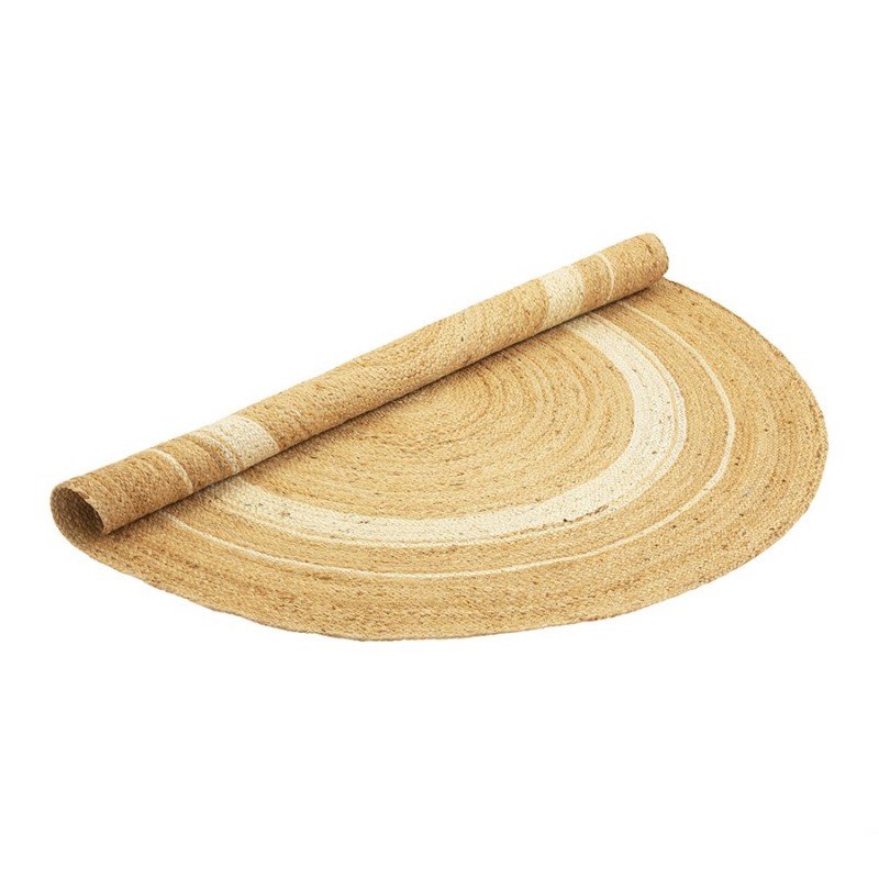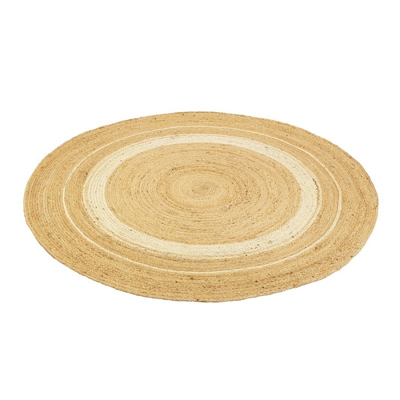 Ковер из джута круглый из коллекции Ethnic – отличное сочетание традиционного дизайна и натуральных материалов. Естественный оттенок и отсутствие дополнительных элементов в виде бахромы и сложных узоров делают это напольное покрытие универсальным. Такой ковер прекрасно вписывается в современные интерьеры и эклектичные пространства, создавая ощущение уюта и тепла домашнего очага. Белые вставки освежают дизайн и помогают в расстановке цветовых акцентов в оформлении. Джутовые волокна отличаются высокой прочностью, могут выдерживать большие нагрузки и сохраняют первоначальную форму на протяжении долгого времени. Это гарантирует готовому изделию практичность и долговечность. Материал не вызывает аллергических реакций, не накапливает статическое электричество и легко очищается.Фактические размеры ковра могут незначительно отличаться в пределах 3-5 см.Диаметр: 150 см. Плотность: 1900 г/м2. Подложка: нет.! Стирка запрещена ! Гладить запрещено ! Барабанная сушка запрещена ! Не отбеливать ! Сухая чистка запрещена ! Допускается ручная чистка пятенРекомендуем незамедлительно удалять любые загрязнения. Для этого используйте бумажные салфетки или ткань с мыльным раствором воды. Регулярно чистите ковер пылесосом. Не применяйте турбощетку или щетку с жестким ворсом. Если появилась зацепка, не вытягивайте нити из ковра. Для их удаления воспользуйтесь ножницами. Стелите ковер на подложку, чтобы продлить срок его службы и защитить напольное покрытие. Небольшое количество ворса может выпадать – это нормально для ковров из натуральных материалов. Обращаем внимание, что острые предметы, открытый огонь, теплая поверхность и чрезмерная влажность могут испортить внешний вид и негативно повлиять на качественные характеристики изделия.Небольшая разница в цвете и фактуре джута в разных частях ковра делает каждое изделие уникальным. У новых напольных покрытий может присутствовать естественный запах, он абсолютно безопасен и при частом проветривании быстро исчезает. После вскрытия упаковки ковер в течение некоторого времени может сохранять элементы деформации вследствие долгого нахождения в скрученном виде, но уже через 1-2 недели он полностью выпрямится. Ковер может выцветать под воздействием прямых солнечных лучей. Рекомендуем периодически менять расположение изделия, чтобы цвет менялся равномерно.