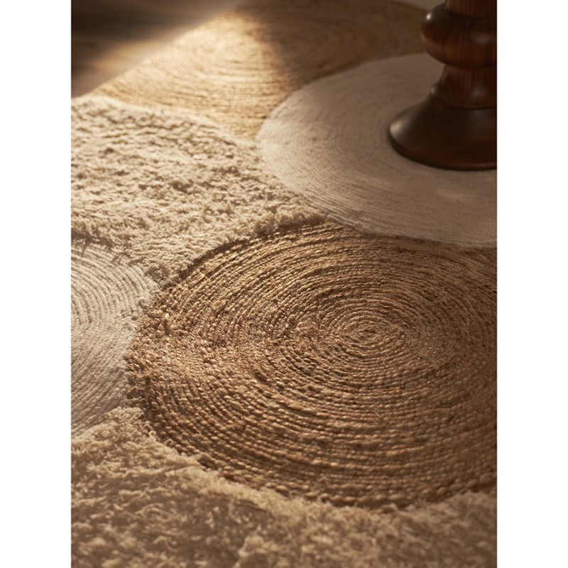 Ковер Agra из коллекции Ethnic – простой способ освежить интерьер и добавить в оформление комнаты ощущение уюта и природного очарования. Удачное сочетание материалов делает это напольное покрытие экологичным, оригинальным, практичным и долговечным. Джутовые волокна обладают высокой прочностью, помогают поглощать шум, создавая более спокойную атмосферу в вашем доме. Шерсть и хлопок обеспечивают мягкость и комфорт. Ковер приятен на ощупь и отлично переносит ежедневные нагрузки. Он идеально подойдет для гостиной, спальни, кабинета или детской комнаты, будет прекрасно гармонировать с различными интерьерными решениями.Фактические размеры ковра могут незначительно отличаться в пределах 3-5 см.Размеры: 200х300 см. Плотность: 2600 г/м2. Высота ворса: 20 мм. Подложка: фетровая.! Стирка запрещена ! Гладить запрещено ! Барабанная сушка запрещена ! Не отбеливать ! Сухая чистка запрещена ! Допускается ручная чистка пятенРекомендуем незамедлительно удалять любые загрязнения. Для этого используйте бумажные салфетки или ткань с мыльным раствором воды. Регулярно чистите ковер пылесосом. Не применяйте турбощетку или щетку с жестким ворсом. Если появилась зацепка, не вытягивайте нити из ковра. Для их удаления воспользуйтесь ножницами. Стелите ковер на подложку, чтобы продлить срок его службы и защитить напольное покрытие. Небольшое количество ворса может выпадать – это нормально для ковров из натуральных материалов. Обращаем внимание, что острые предметы, открытый огонь, теплая поверхность и чрезмерная влажность могут испортить внешний вид и негативно повлиять на качественные характеристики изделия.Небольшая разница в цвете и фактуре джута и переработанного текстиля в разных частях ковра делает каждое изделие уникальным. У новых напольных покрытий может присутствовать естественный запах, он абсолютно безопасен и при частом проветривании быстро исчезает. После вскрытия упаковки ковер в течение некоторого времени может сохранять элементы деформации вследствие долгого нахождения в скрученном виде, но уже через 1-2 недели он полностью выпрямится. Ковер может выцветать под воздействием прямых солнечных лучей. Рекомендуем периодически менять расположение изделия, чтобы цвет менялся равномерно.