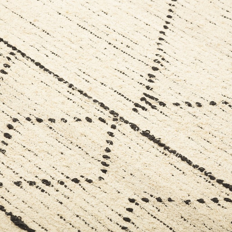 Ковер Dispur из коллекции Ethnic – удачное сочетание современного дизайна и этнических мотивов. Выполненное из переработанного хлопка, изделие отличается высокой прочностью, стойкостью к износу и простым уходом. Материал экологичный, имеет приятную на ощупь фактуру. Геометрический узор создает ощущение движения и глубины, добавляя в интерьер оригинальный акцент. Дизайн прекрасно вписывается в различные стилевые решения: бохо-шик, кантри, прованс, фьюжн, эклектика. Это напольное покрытие идеально подходит для оформления спальни, гостиной, кабинета и любой другой комнаты в доме.Фактические размеры ковра могут незначительно отличаться в пределах 3-5 см.Материал: 100% переработанный хлопок. Размеры: 160х230 см.! Стирка запрещена ! ! Гладить запрещено ! Барабанная сушка запрещена ! Не отбеливать ! Сухая чистка запрещена ! Допускается ручная чистка пятенРекомендуем незамедлительно удалять любые загрязнения. Используйте бумажные салфетки или ткань с использованием мыла или мягкого специализированного средства. Регулярно чистите ковер пылесосом. Не используйте турбощетку или щетку с жестким ворсом. Если появилась зацепка, не вытягивайте нити из ковра, чтобы их удалить используйте ножницы. Стелите ковер на подложку, чтобы продлить срок его службы и защитить напольное покрытие. Небольшое количество ворса может выпадать, это нормально для ковров из натуральных материалов. Обращаем внимание, что острые предметы, открытый огонь, теплая поверхность и чрезмерная влажность могут испортить внешний вид и характеристики изделия.