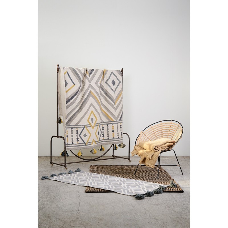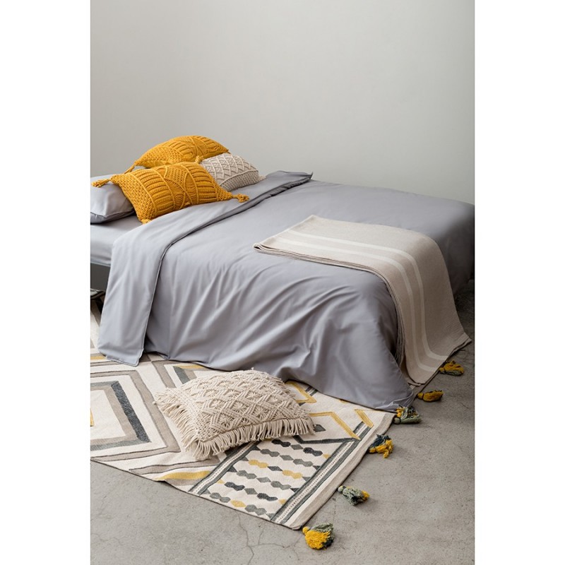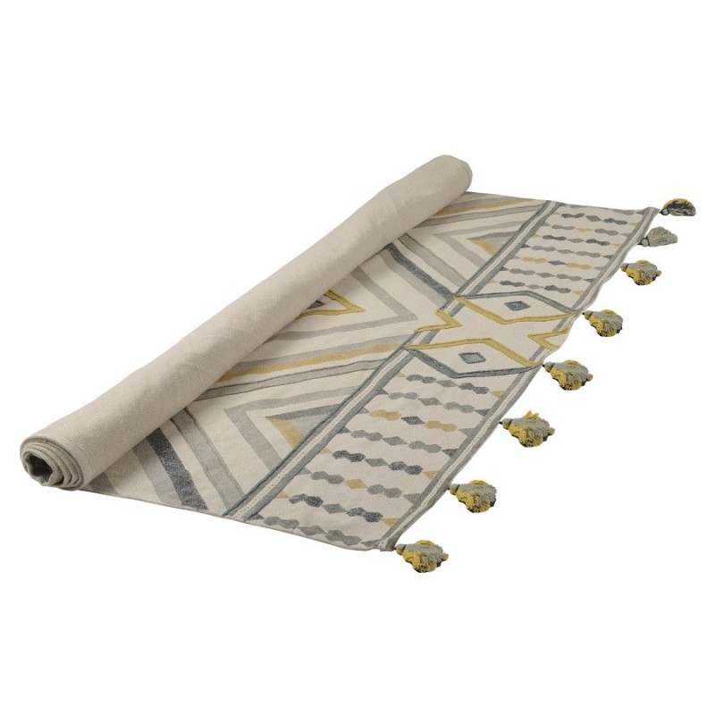 Ковер из хлопка с контрастным узором и кисточками из коллекции Ethnic органично впишется в любой интерьер: от минимализма и фьюжн, до скандинавского и бохо. Изделие с этническими мотивами выполнено из высококачественного и прочного хлопка. Станет ярким акцентом в детской и любой другой комнате. Ковер с объемными кисточками представлен в нескольких размерах. Плотность - 900 г/м2.Размеры изделия указаны без учета бахромы и декоративных элементов. Фактические размеры ковра могут незначительно отличаться в пределах 3-5 см.Размер: 200х300 см.! Стирка запрещена ! Гладить запрещено ! Барабанная сушка запрещена ! Не отбеливать ! Сухая чистка запрещена ! Допускается ручная чистка пятенЗасохшие пятна можно удалять соскабливанием мягкими щетками в направлении к центру пятна, а влажные — бумажными салфетками или тканью с мягким моющим средством. Для чистки ковра пылесосом используйте стандартную щетку. Применение турбощетки категорически запрещается. Перед эксплуатацией изделия обязательно ознакомьтесь с правилами ухода на этикетке.Этот экологичный ковер выполнен из переработанного материала, поэтому каждое изделие имеет неповторимый вид. Небольшая разница в цвете и фактуре текстиля в разных частях ковра делает его уникальным и особенным. После того, как Вы достали новый ковер из упаковки, он может лежать не совсем ровно, но выпрямится через несколько недель.Ковер может выцветать под воздействием прямых солнечных лучей. Рекомендуем периодически менять расположение изделия, чтобы цвет менялся равномерно. В первые недели использования возможно небольшое осыпание ворса и появление петелек на полотне ковра. Это абсолютно нормально и пройдет со временем. Запрещается складывать ковер пополам. Сверните ковер в рулон лицевой стороной внутрь. Ковры темных оттенков могут оставлять следы на светлых поверхностях, особенно при намокании, поэтому рекомендуем использовать подложку, чтобы защитить напольное покрытие.