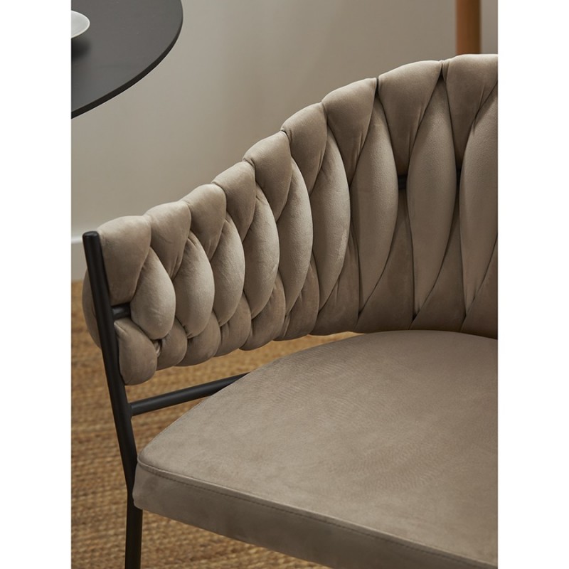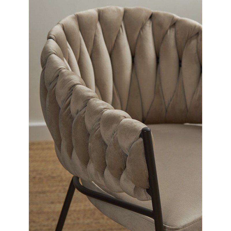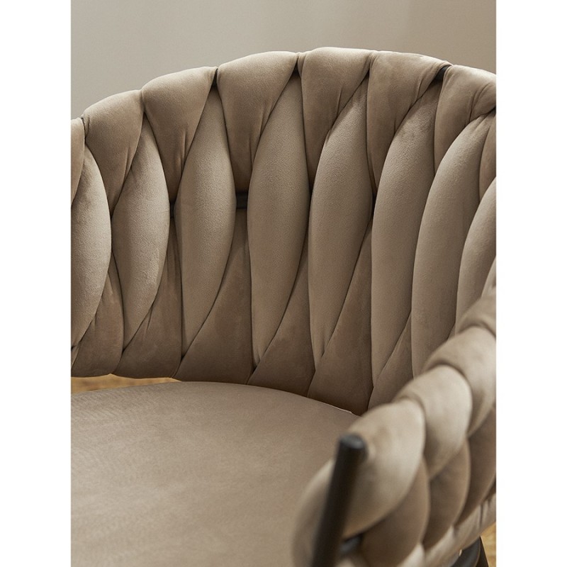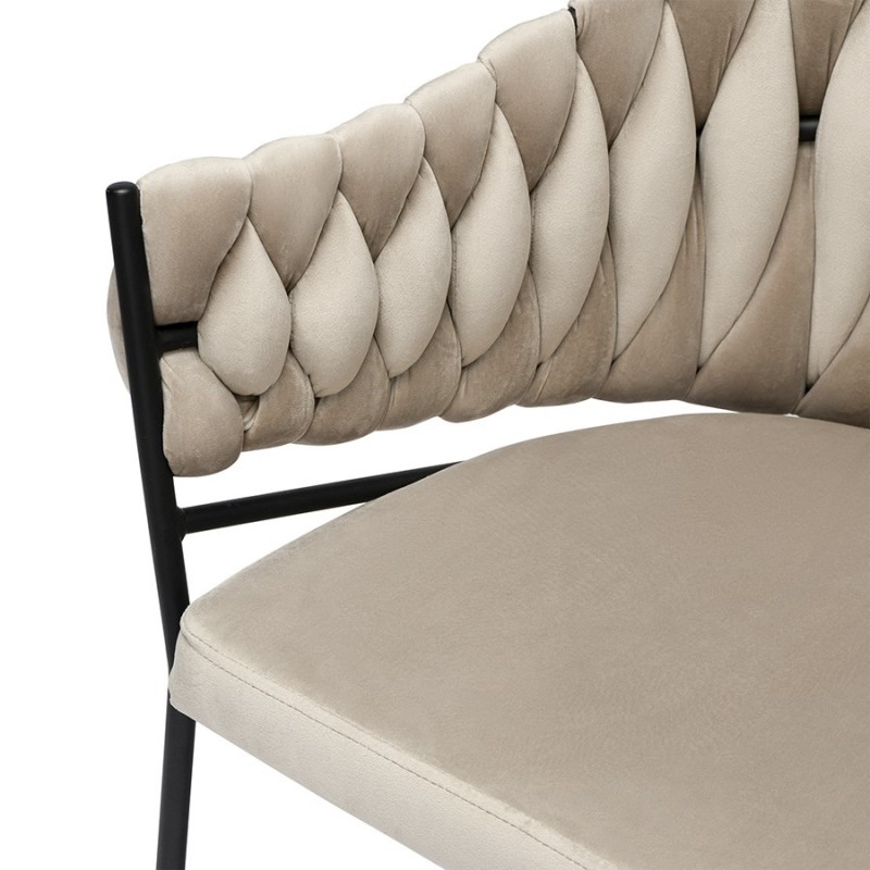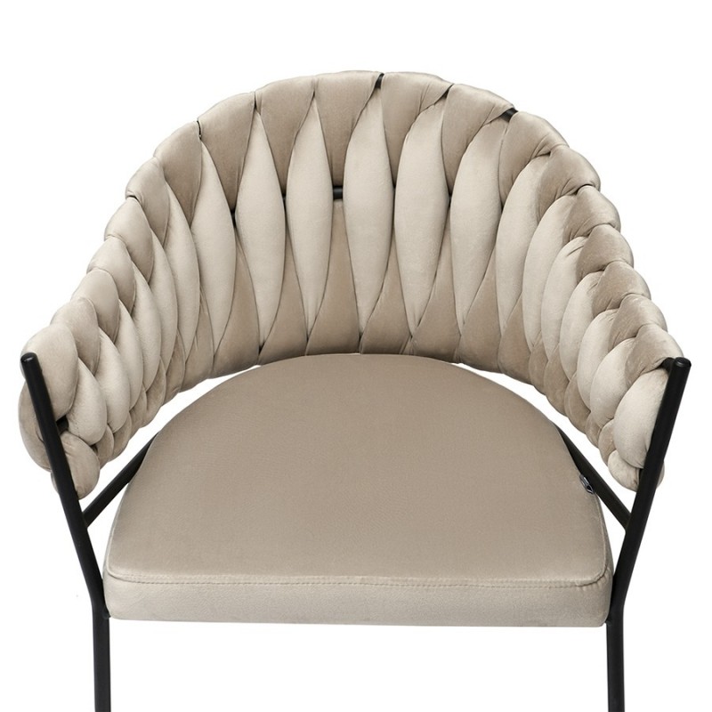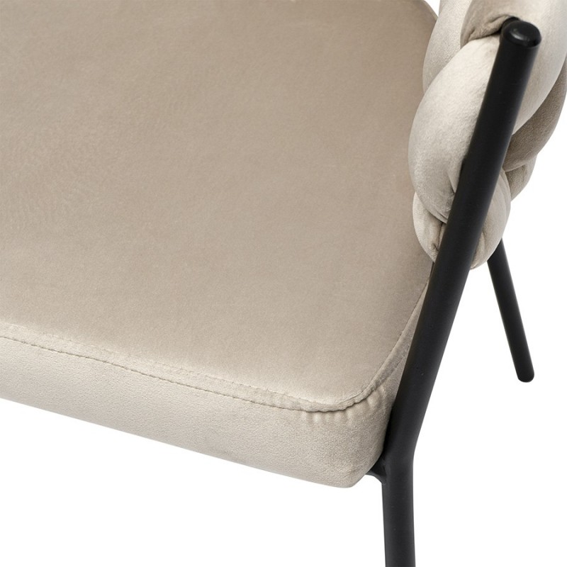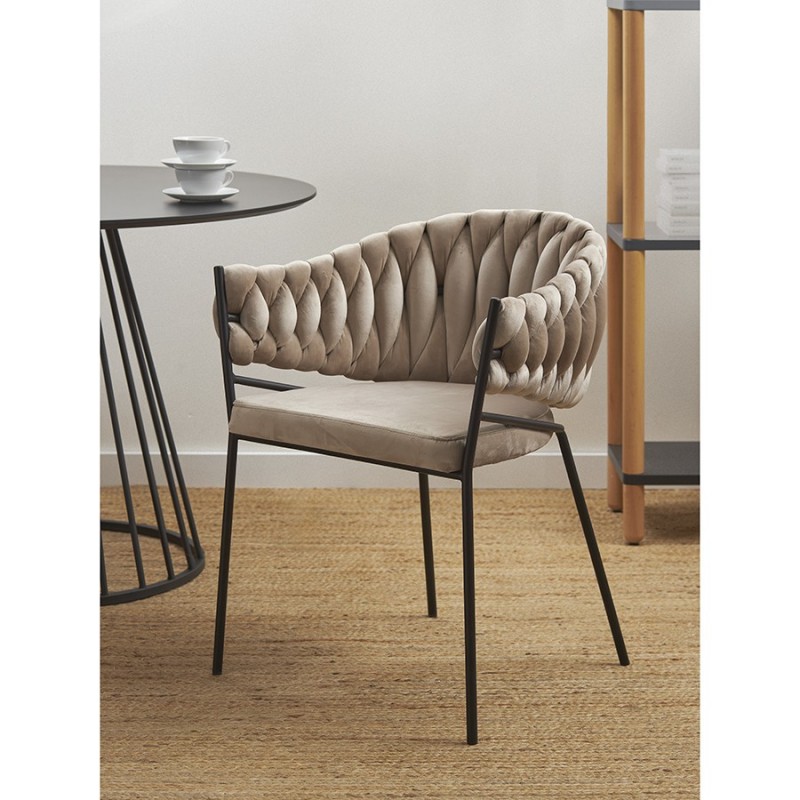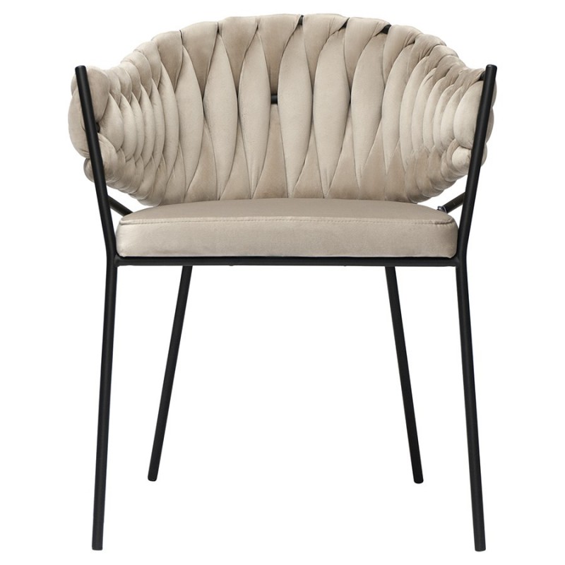 Кресло Lind поможет сделать акцент на стильном дизайне интерьера. Главная особенность модели – оригинальная плетеная спинка. Бархатистый, приятный на ощупь велюр дарит тактильный комфорт и смягчает строгие формы прочного железного каркаса. За счет высоких ножек модель выглядит утонченно, благодаря чему не перегружает пространство. Сиденье с наполнителем из пенополиуретана, глубокая посадка и наличие подлокотников обеспечивают комфорт во время отдыха. Мебель в спокойных тонах станет оптимальным вариантом для спальни, гостиной, кабинета, оформленных в любой цветовой гамме.Материалы: 87% полиэстер, 10% вискоза, 3% нейлон, фанера, железо, пенополиуретан. Размеры: 60х53х77 см. Высота сиденья: 48 см. Ширина сиденья: 45 см. Глубина сиденья: 43 см. Высота спинки: 31 см. Ширина спинки: 36 см. Максимальная нагрузка: 120 кг. Цвет: бежевый.Рекомендуется регулярно пылесосить мебель с помощью специальной насадки. Загрязнения можно удалять при помощи мягкой влажной ткани.